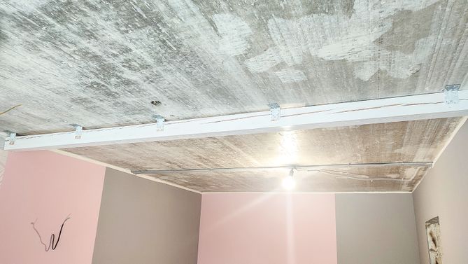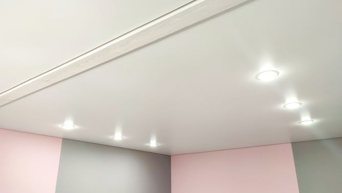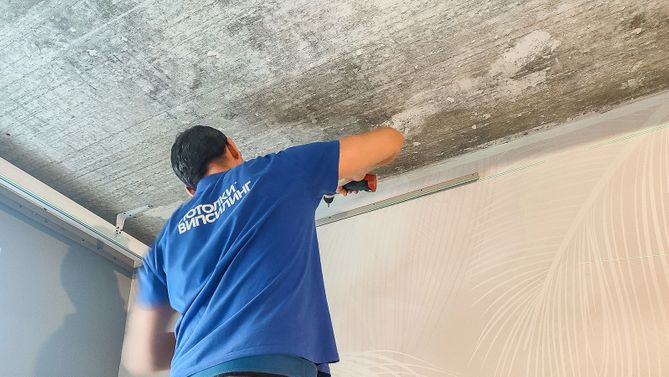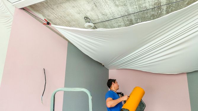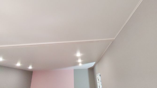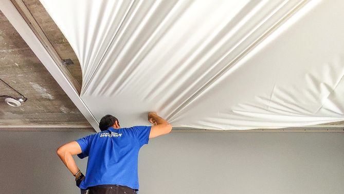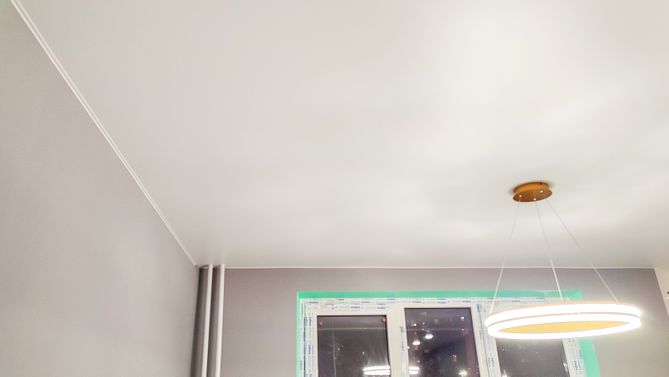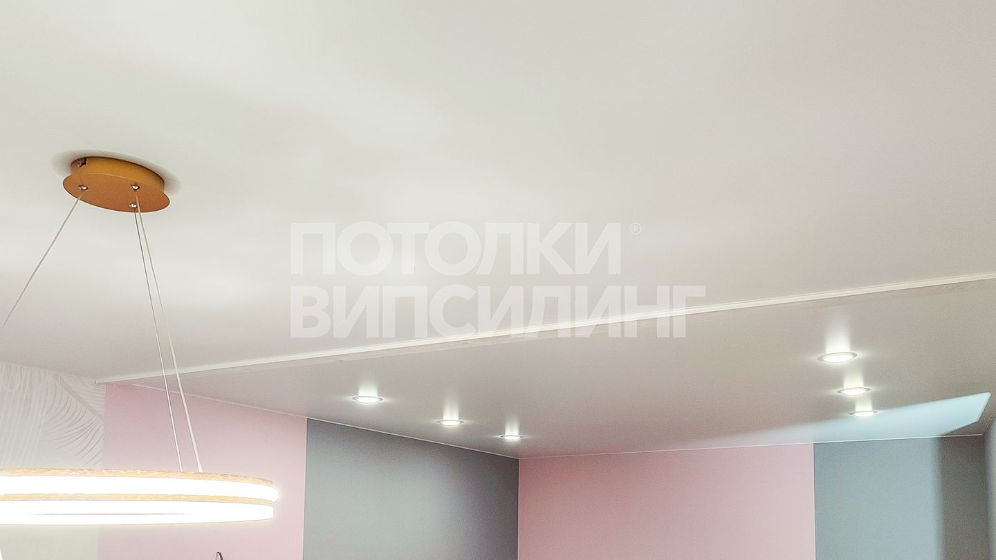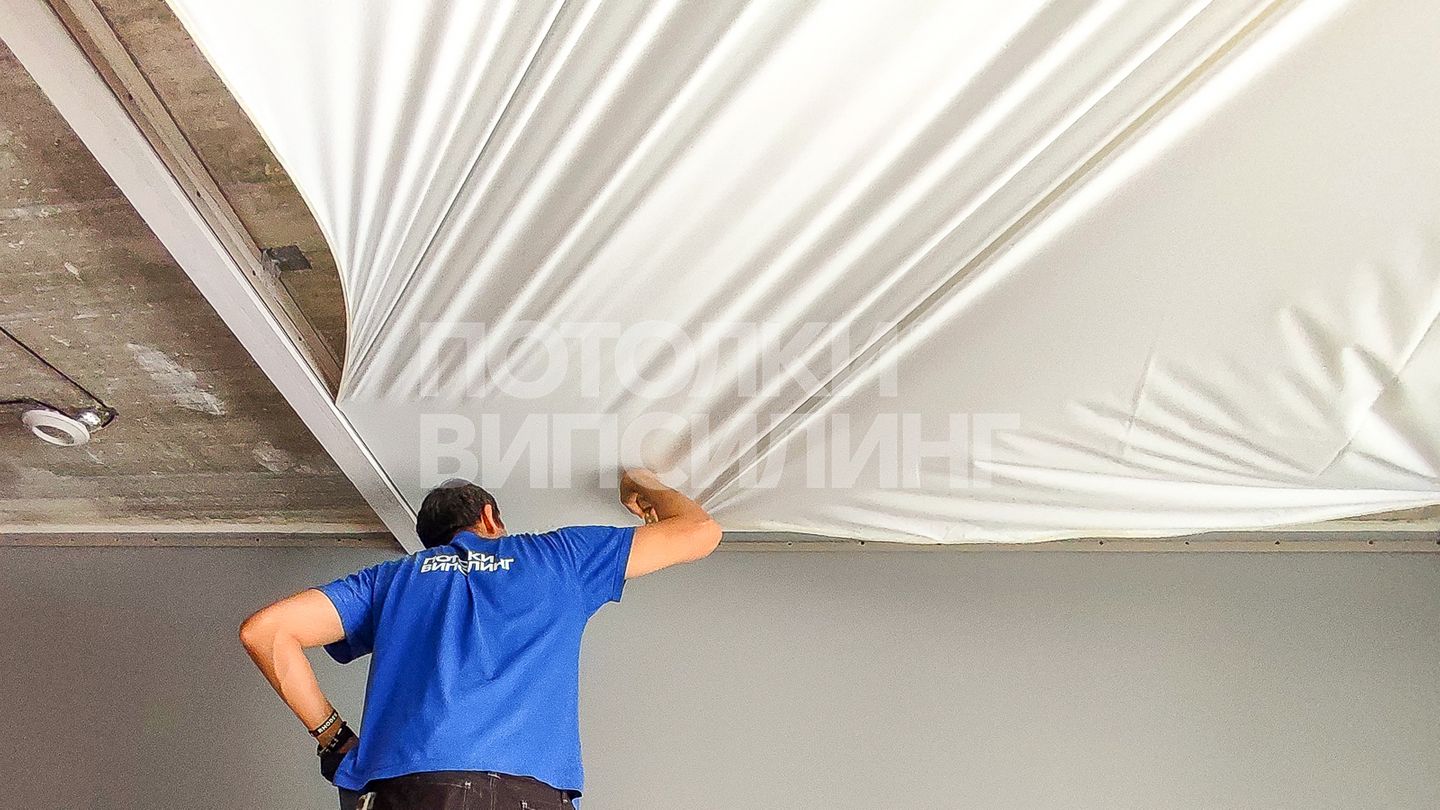 Монтаж потолка в гостиной 18 м2, полотно VISP S9020 (3.50)
