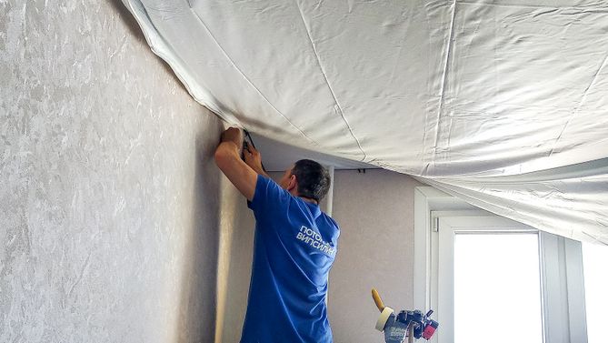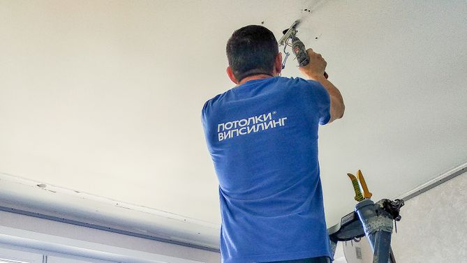 Монтаж потолка в спальне 15 м2, полотно VISP S9020 (3.50)