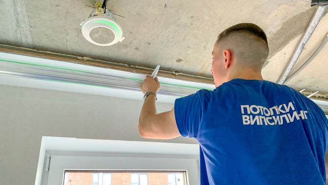 Монтаж потолка в спальне 12 м2, полотно VISP M9001 (3.25)