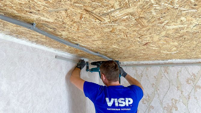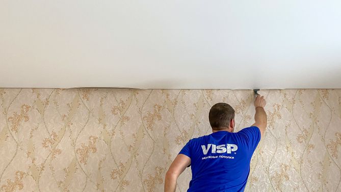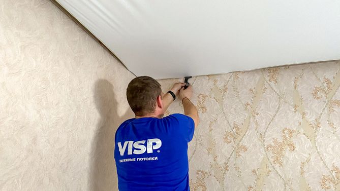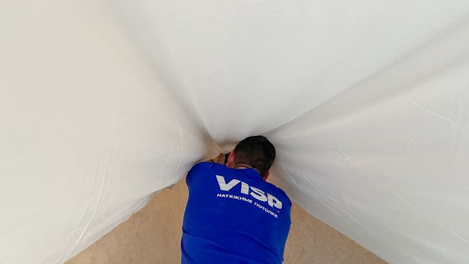 Монтаж потолка в спальне 12 м2, полотно VISP M9001 (3.50)