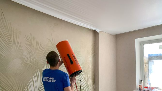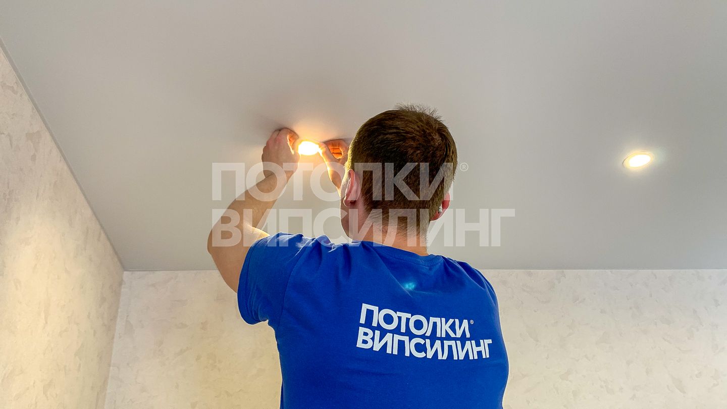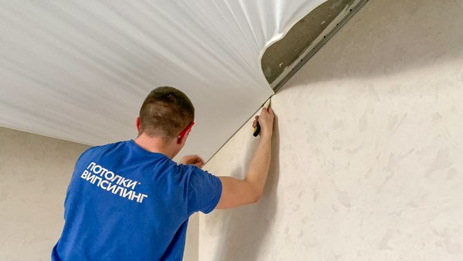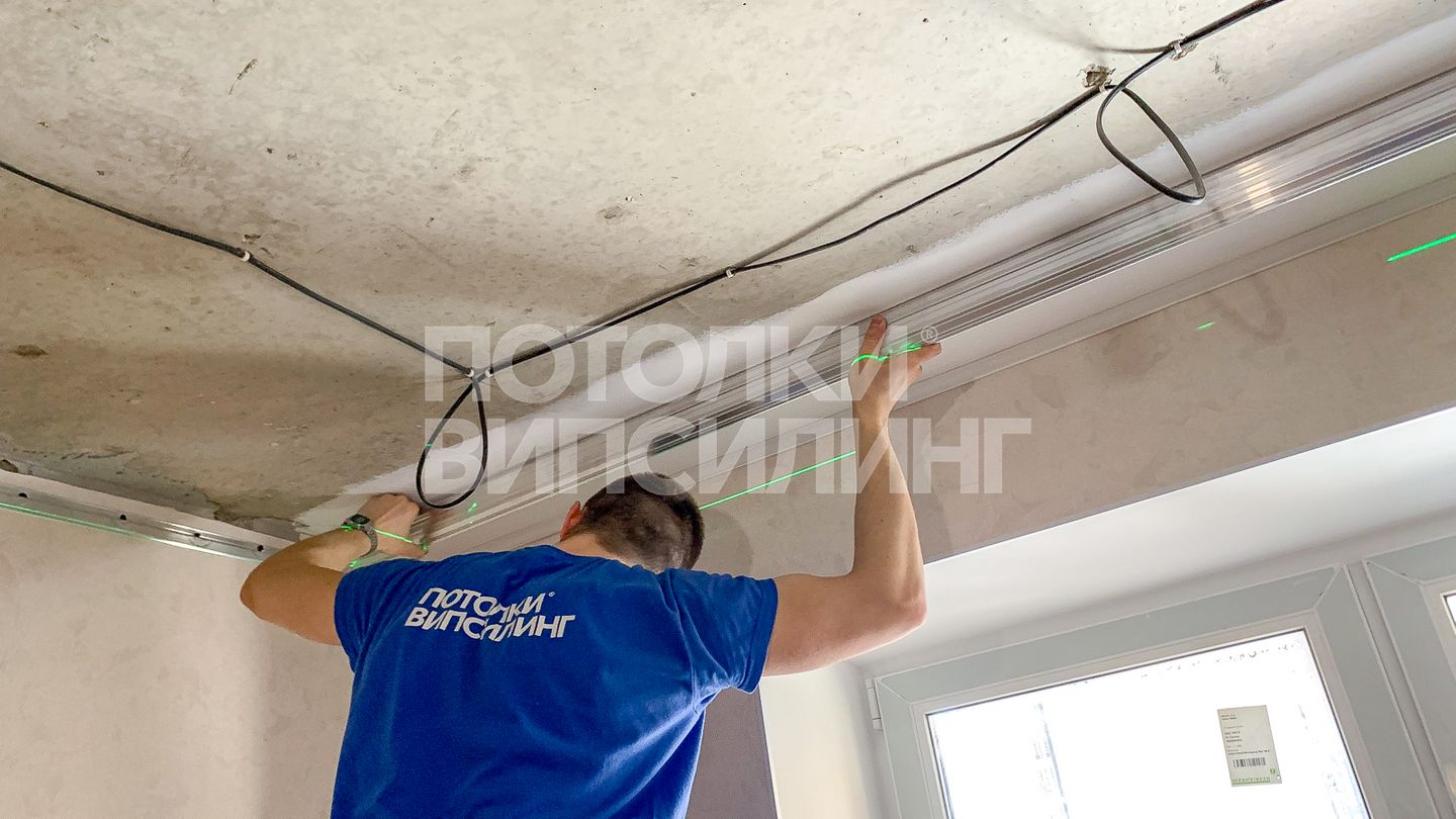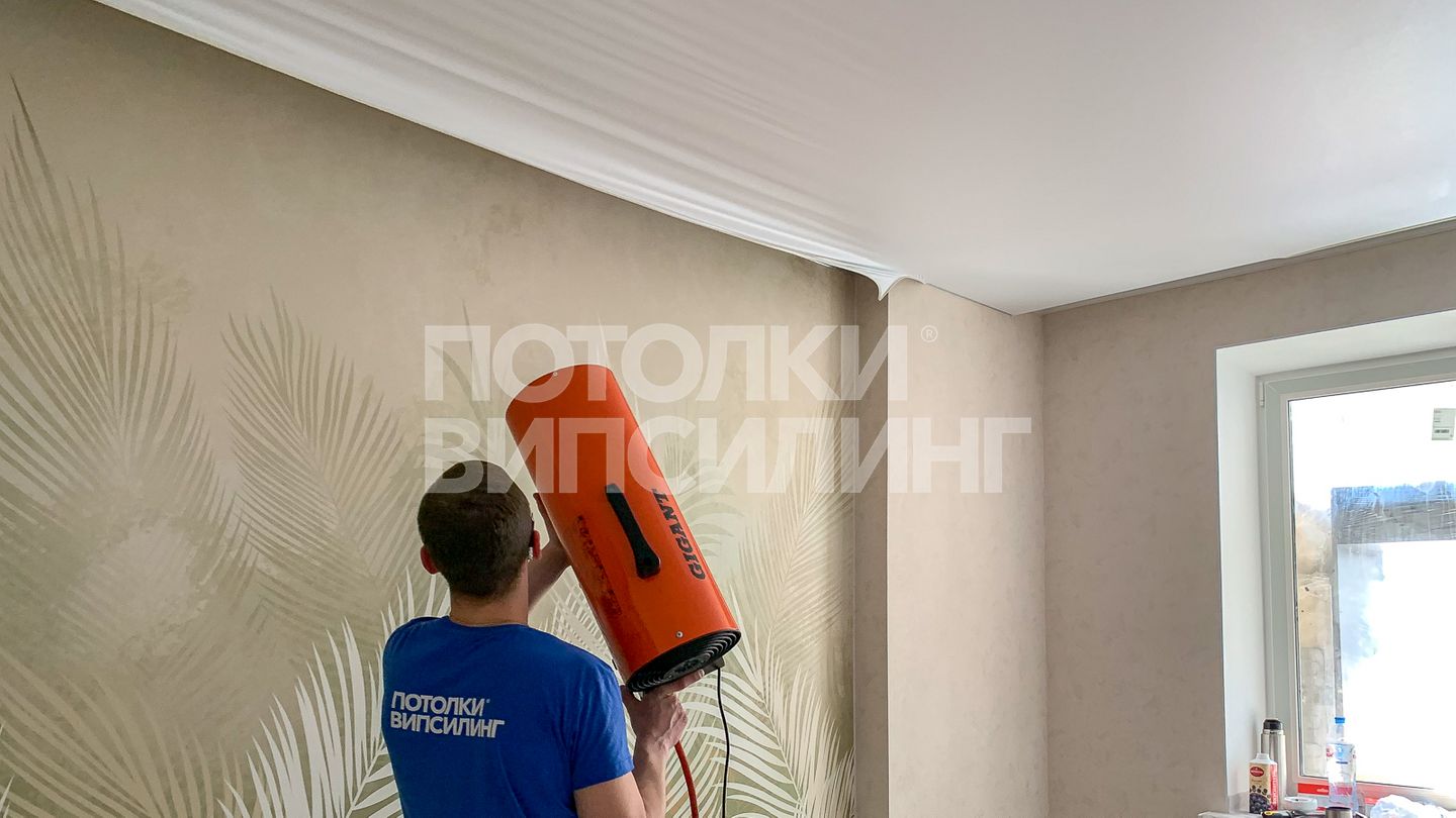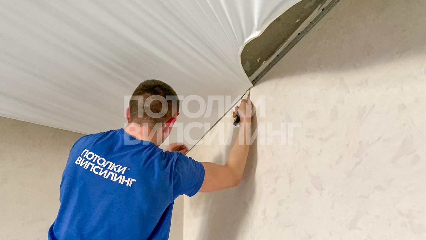 Монтаж потолка в гостиной 17 м2, полотно VISP M9001 (3.25)