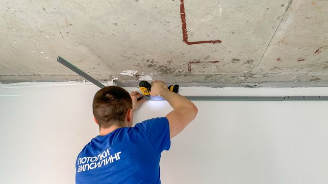 Монтаж потолка в детской 14 м2, полотно VISP M9001 (3.50)