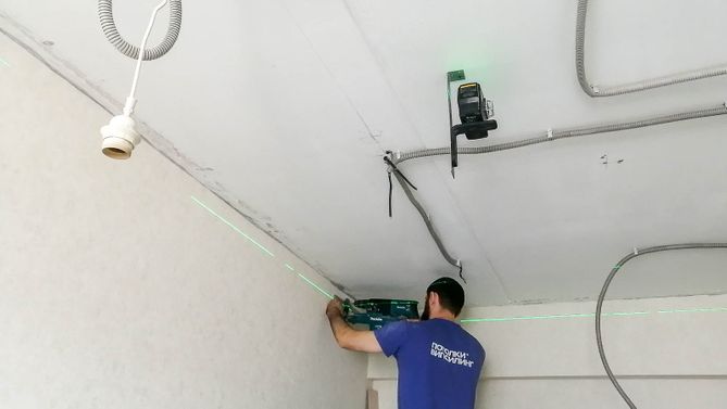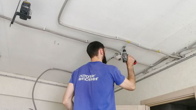 Монтаж потолка для зала 16 м2, полотно VISP L9001 (3.25)