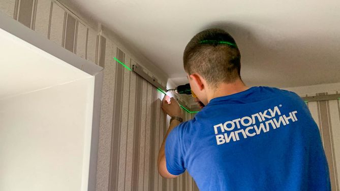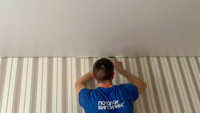 Монтаж потолка в спальне 9 м2, полотно VISP S9020 (2.60)