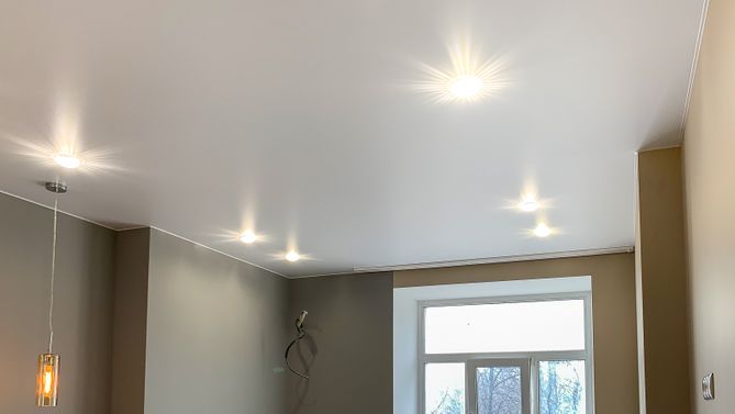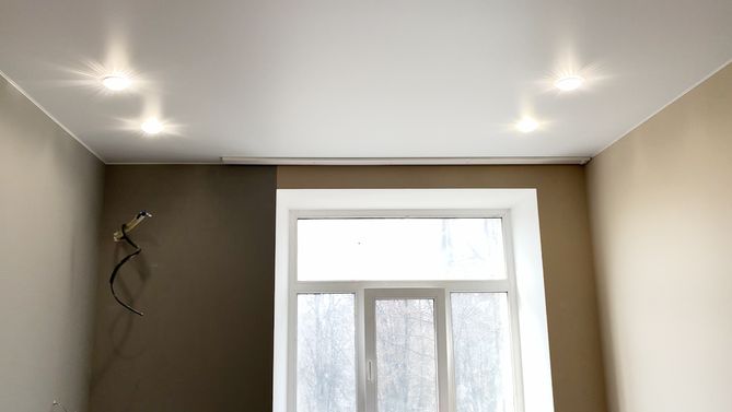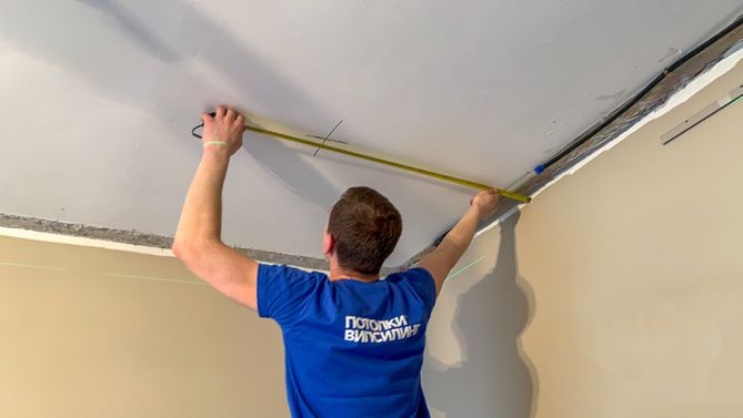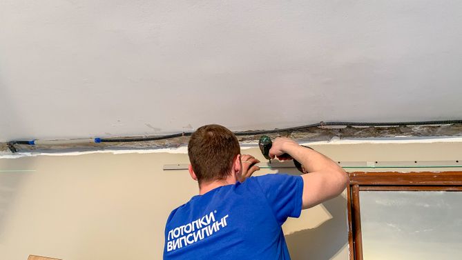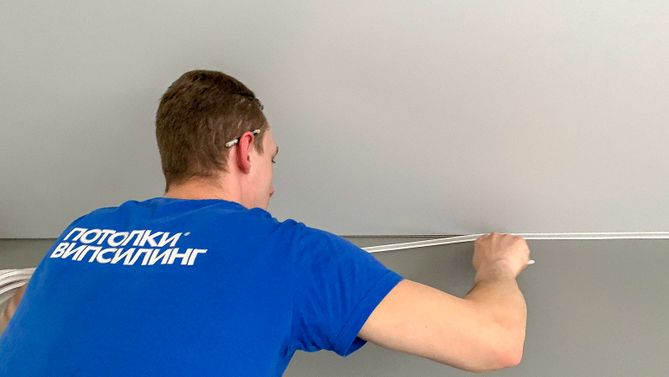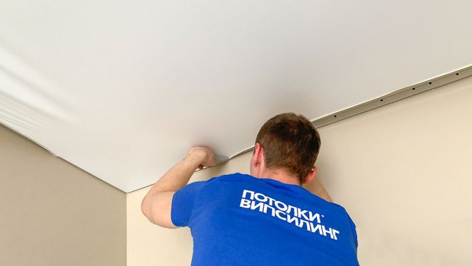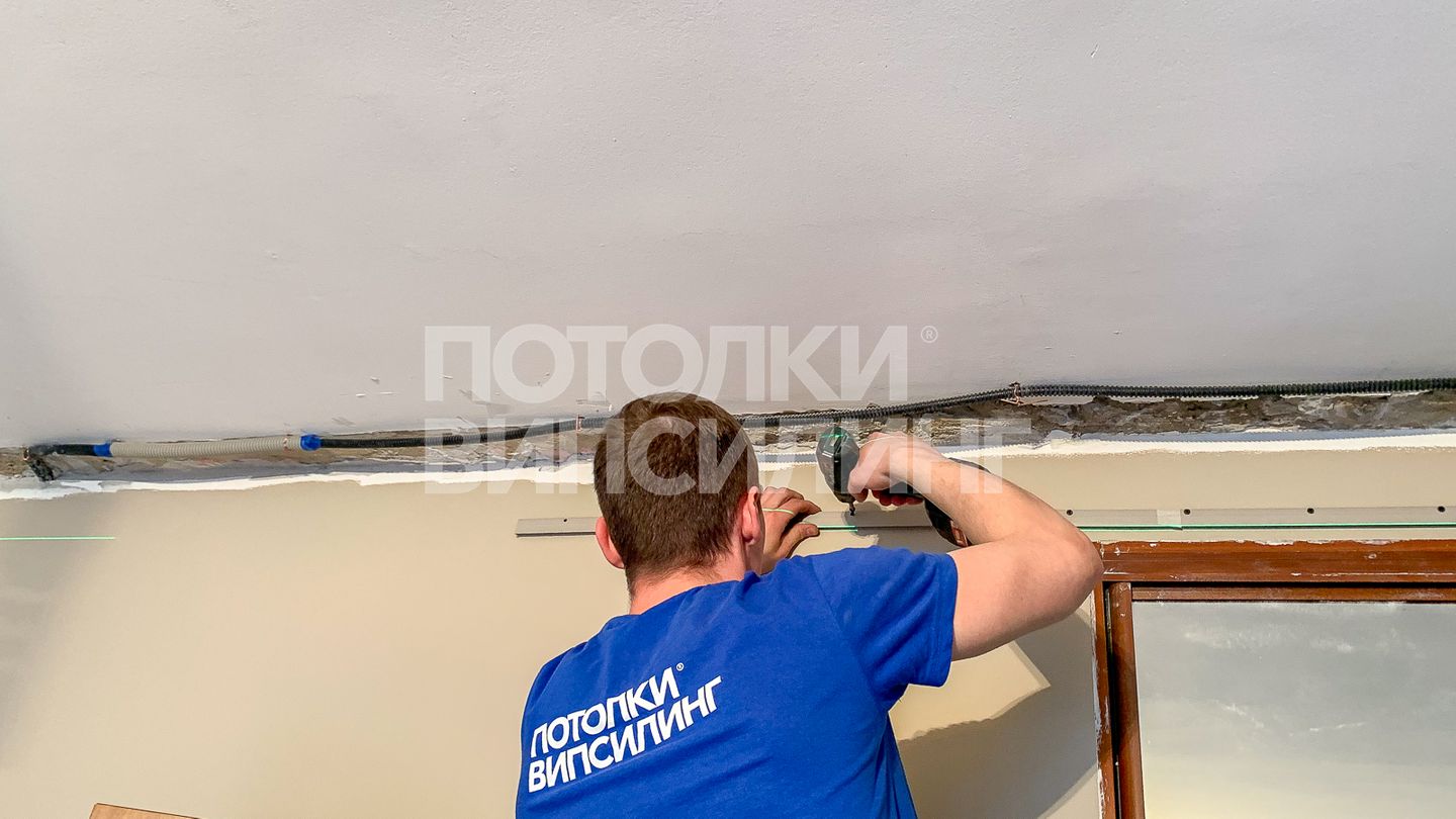 Монтаж потолка в спальне 18 м2, полотно VISP M9001 (3.80)