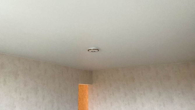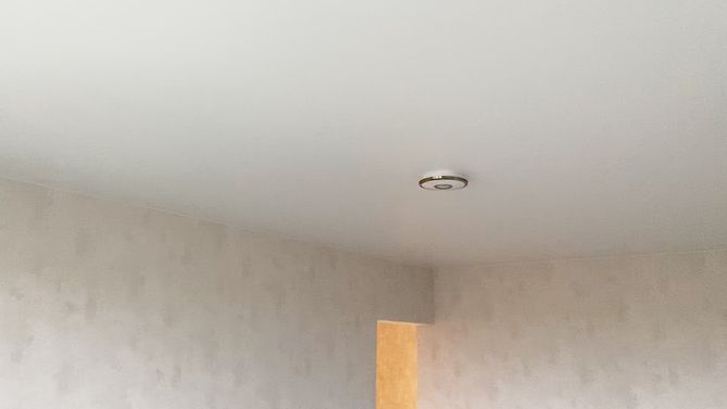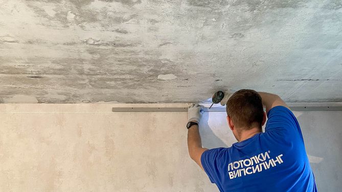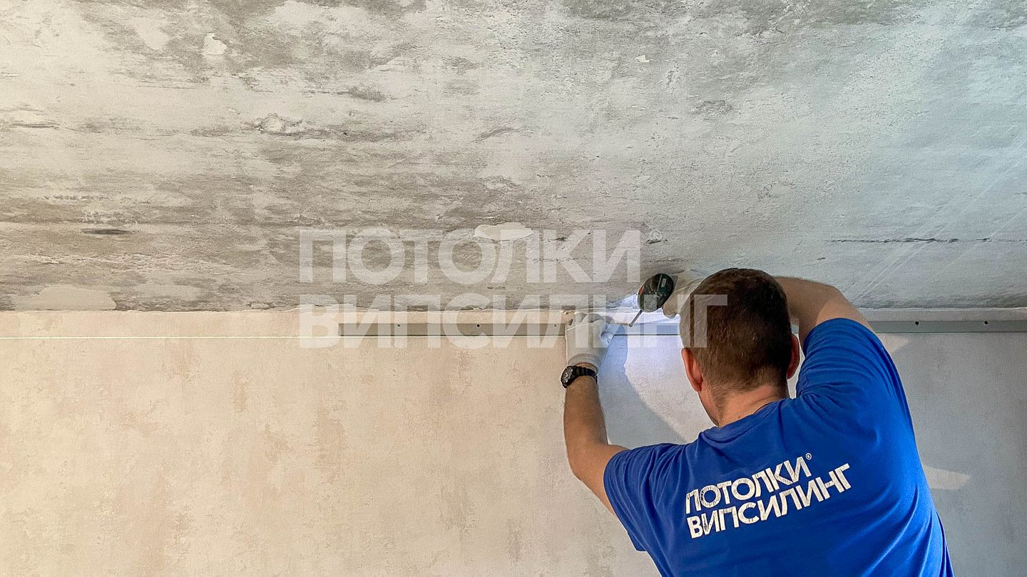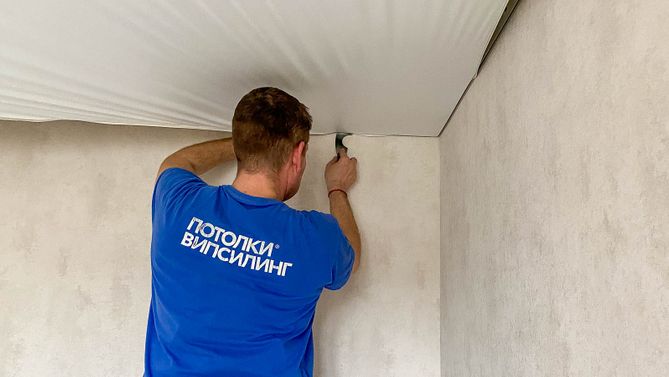 Монтаж потолка в гостиной 18 м2, полотно VISP M9001 (3.50)
