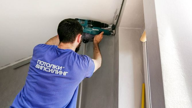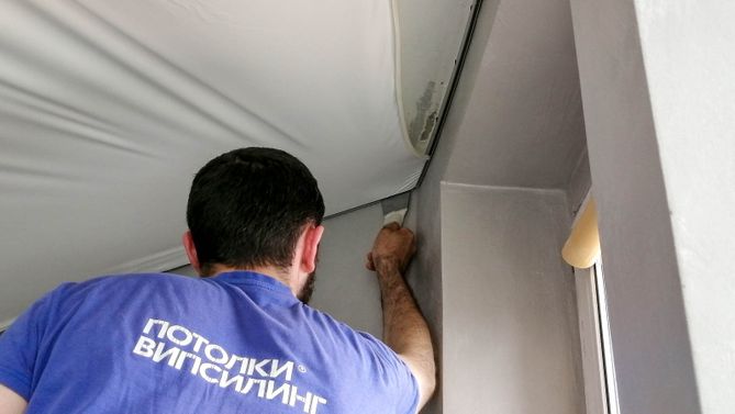 Монтаж потолка для зала 19 м2, полотно VISP M9001 (3.50)