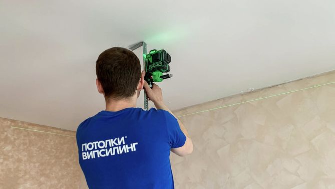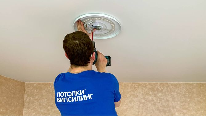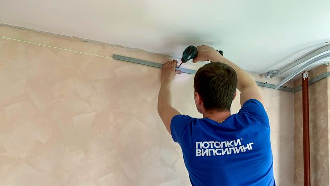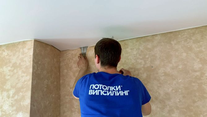 Монтаж потолка для зала 18 м2, полотно VISP M9001 (3.80)