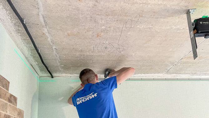 Монтаж потолка на кухне 9 м2, полотно VISP S9020 (2.60)