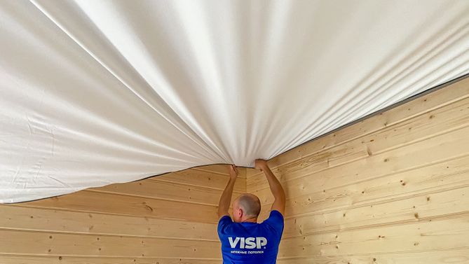 Монтаж потолка в спальне 15 м2, полотно VISP M9001 (2.15)