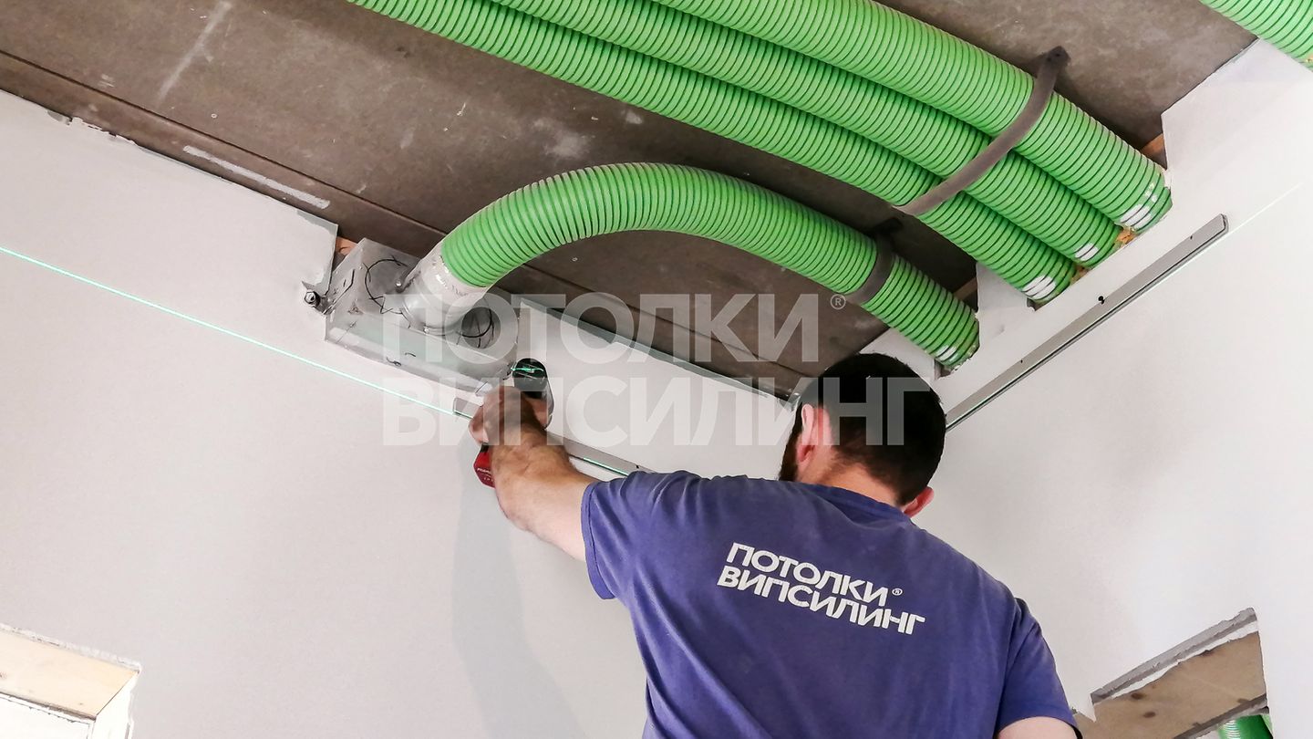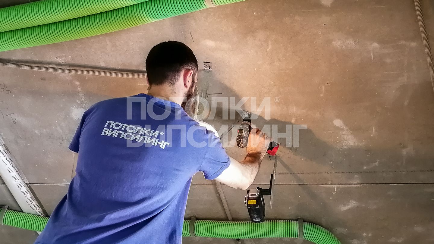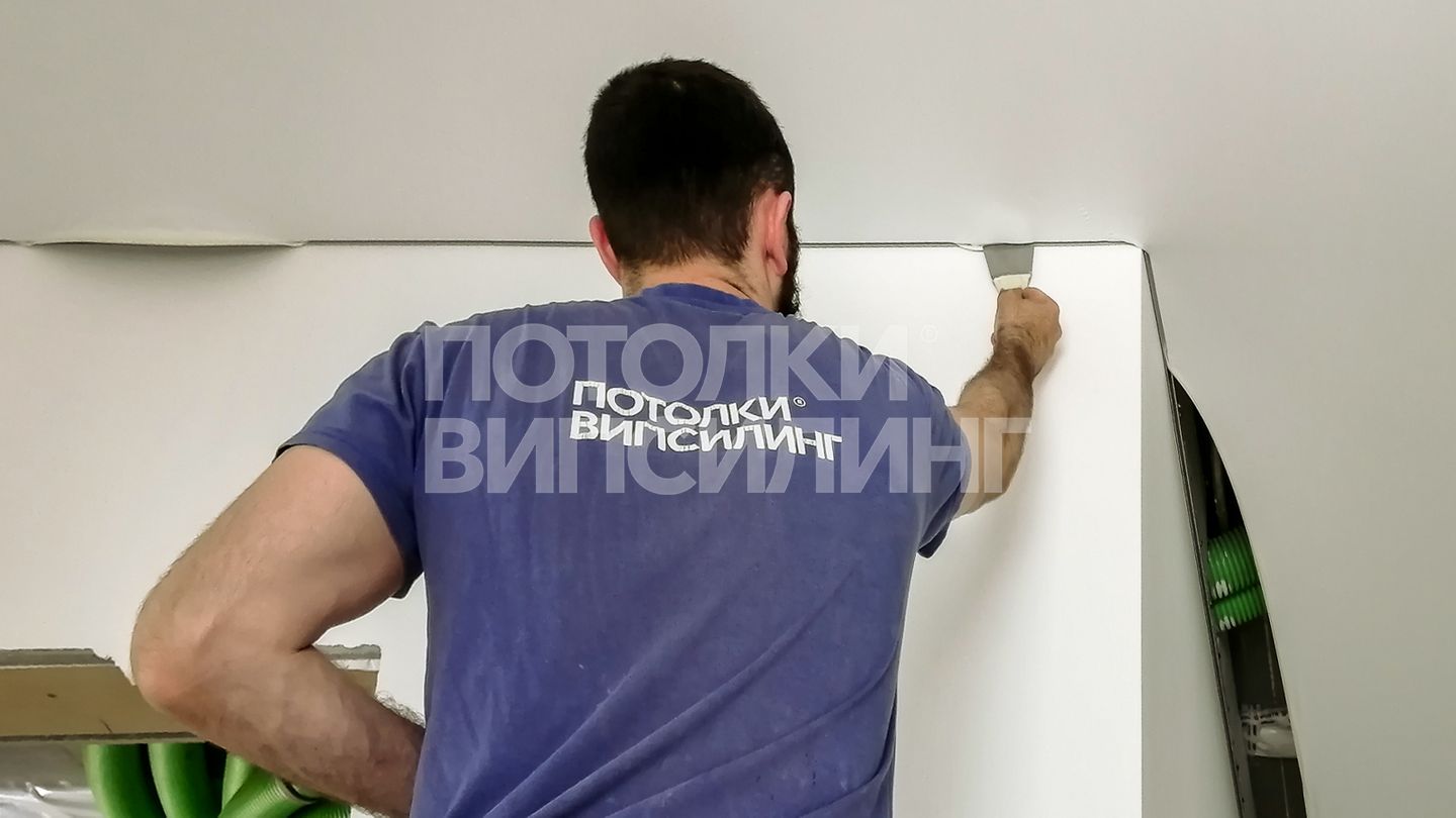 Монтаж потолка в коридоре 16 м2, полотно VISP M9001 (3.80)
