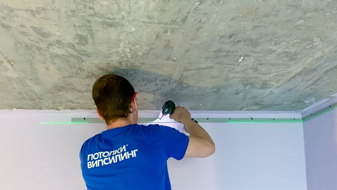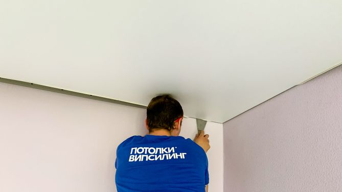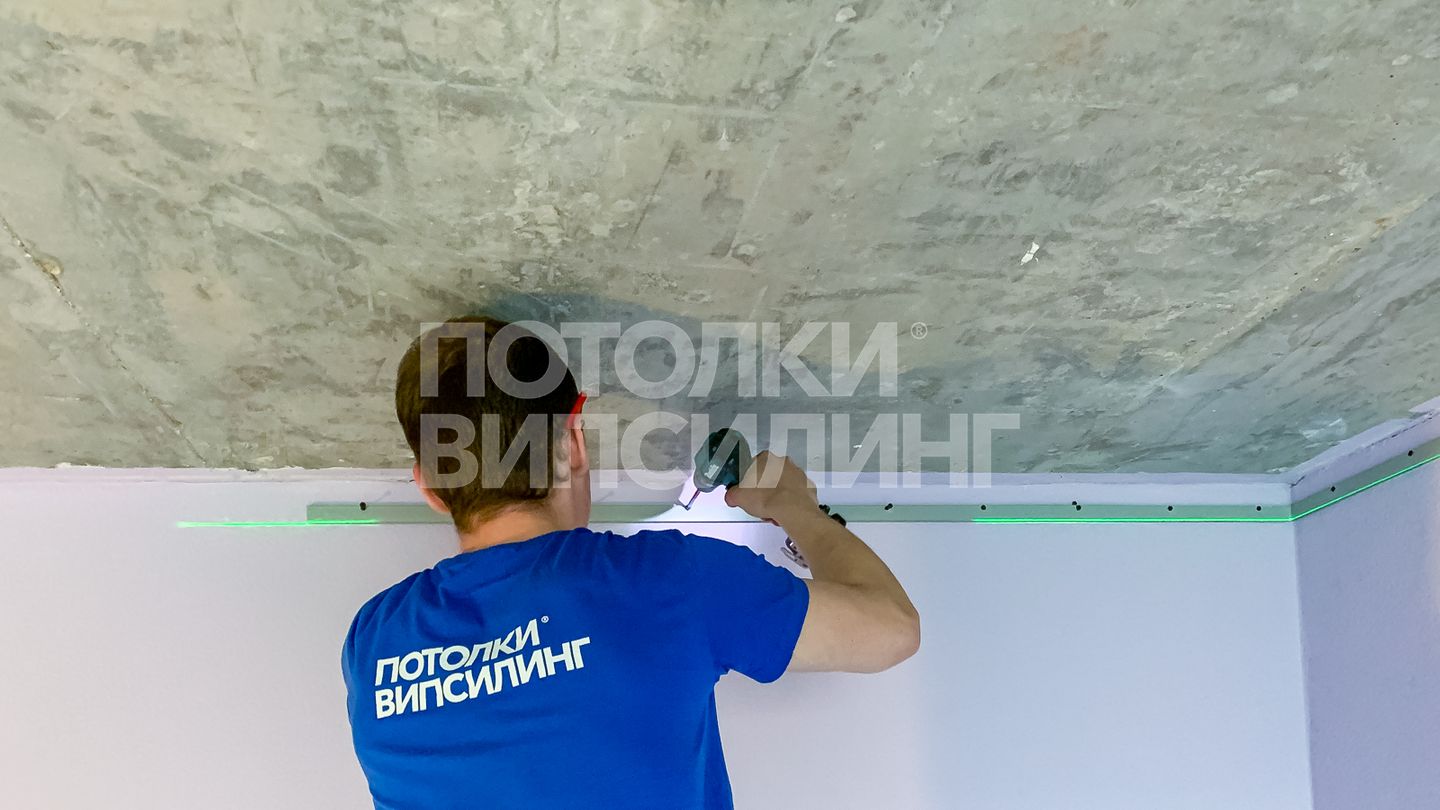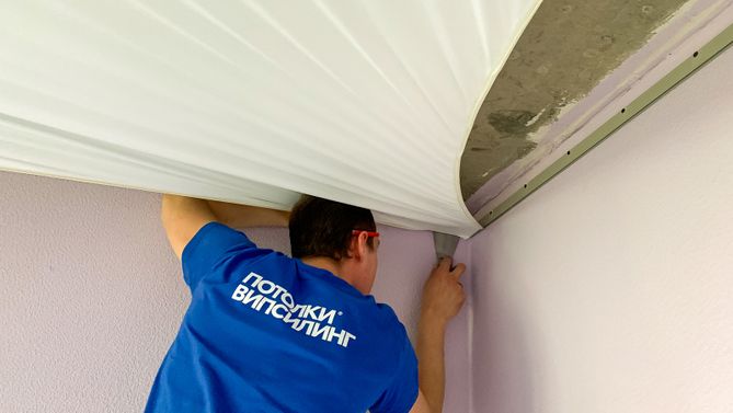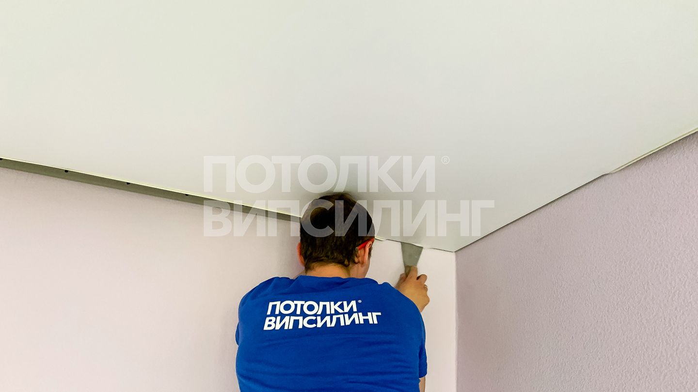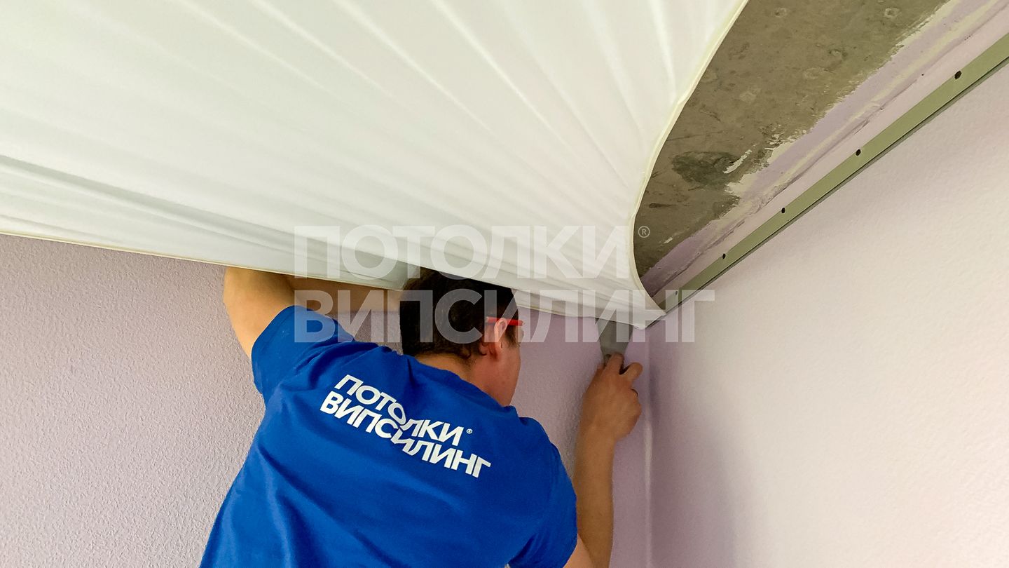 Монтаж потолка в гостиной 17 м2, полотно VISP M9001 (3.25)