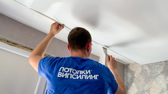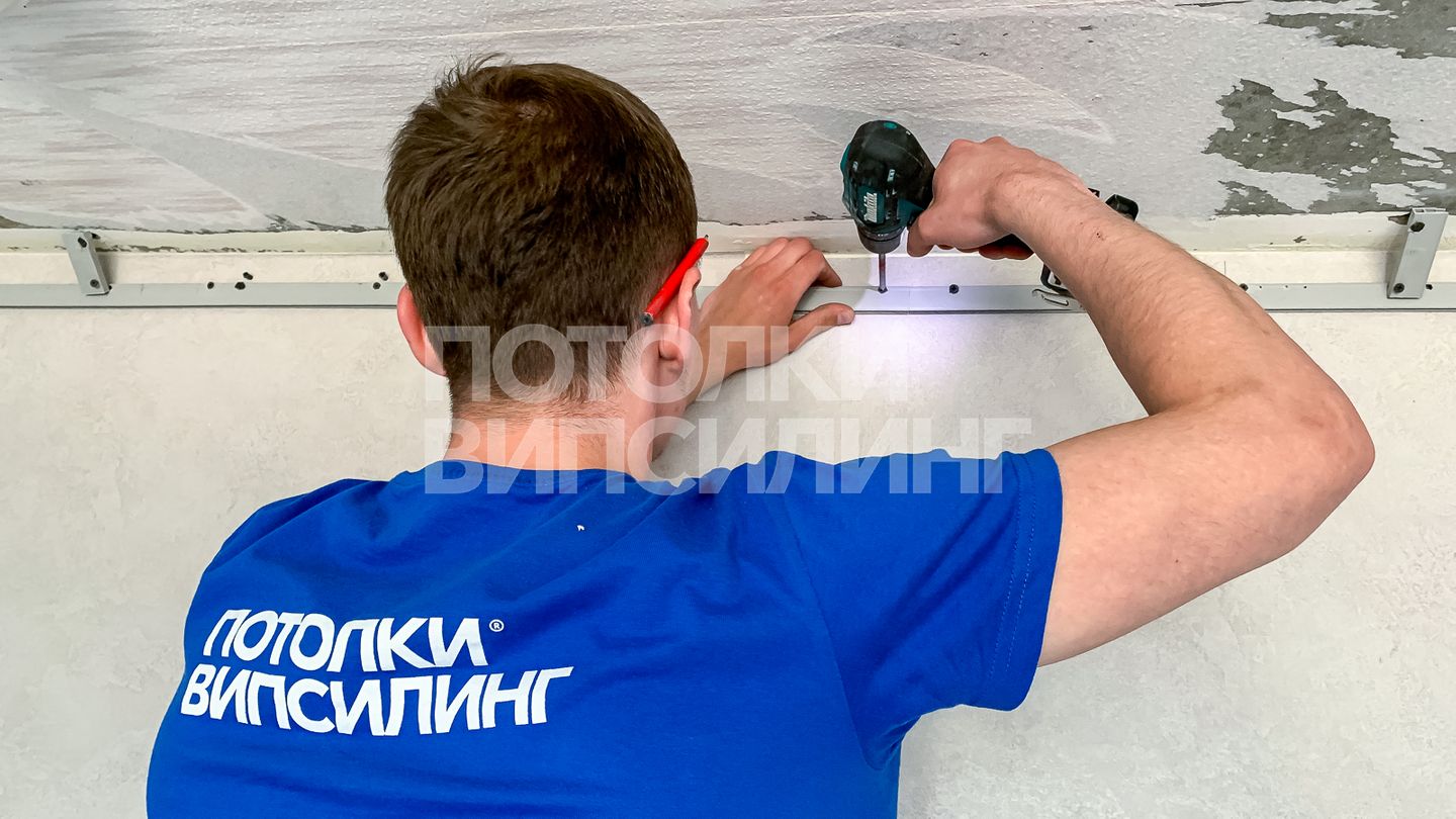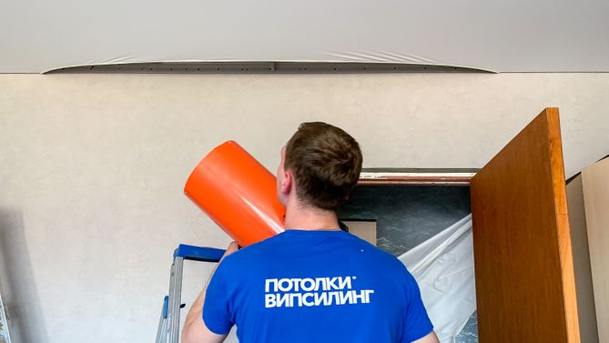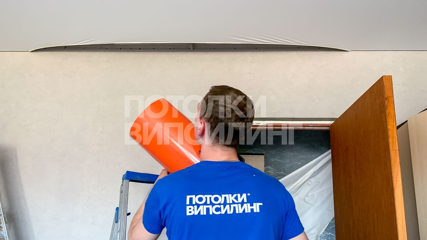 Монтаж потолка для зала 15 м2, полотно VISP M9001 (3.50)