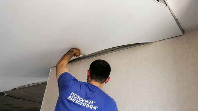 Монтаж потолка на кухне 12 м2, полотно VISP M9001 (2.15)
