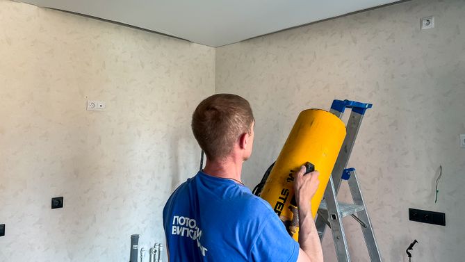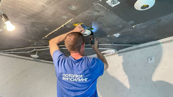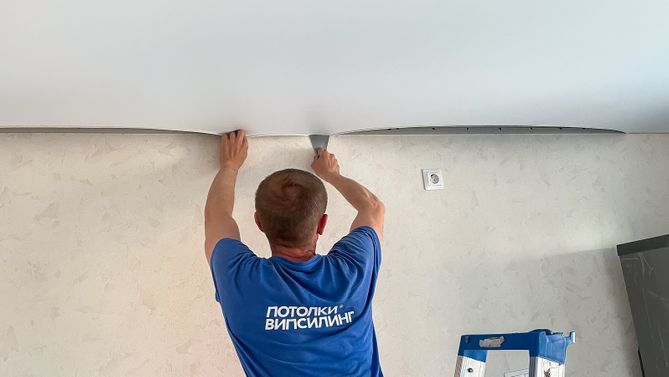 Монтаж потолка на кухне 10 м2, полотно VISP M9001 (3.25)
