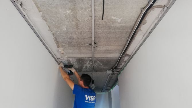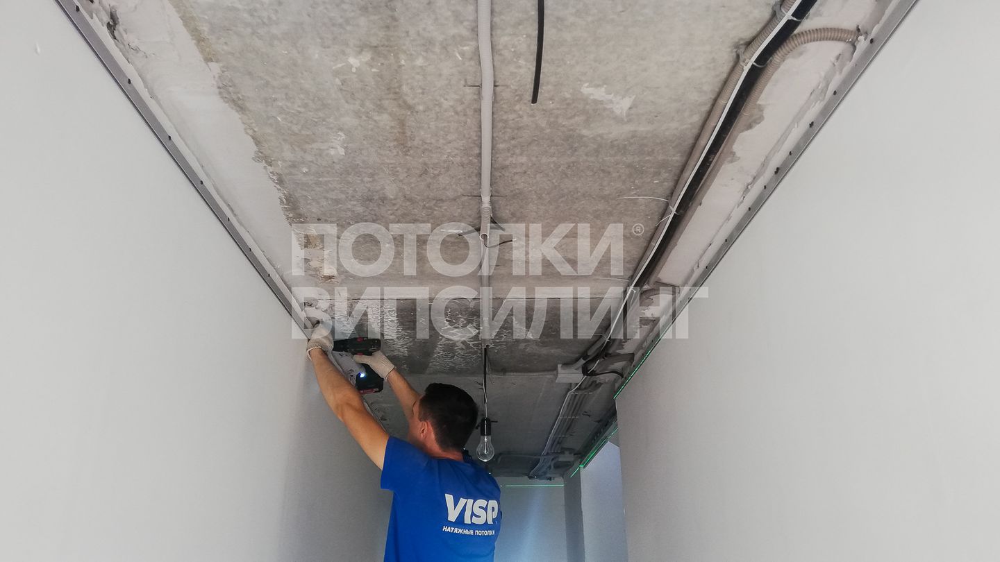 Монтаж потолка в коридоре 8 м2, полотно VISP M9001 (2.15)