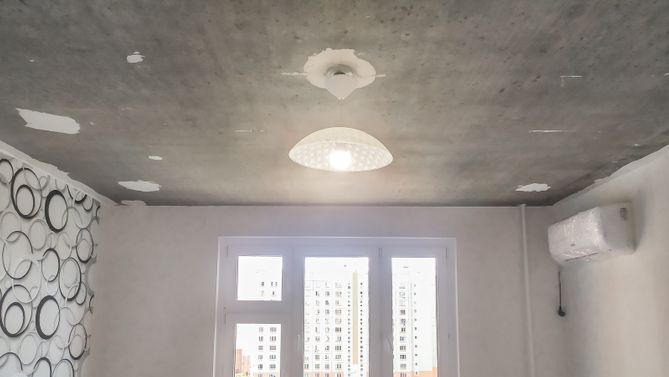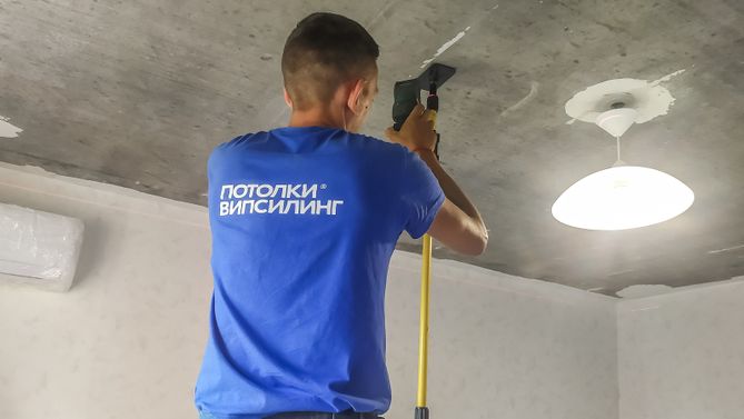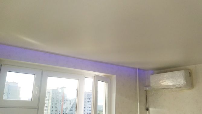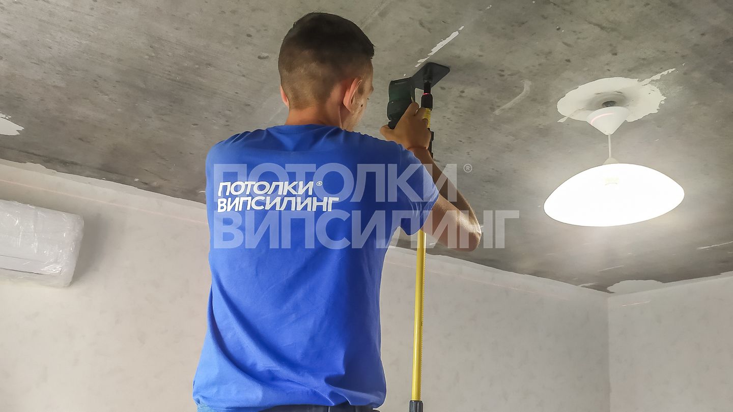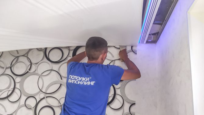 Монтаж потолка в гостиной 19 м2, полотно VISP F9010 (3.50)