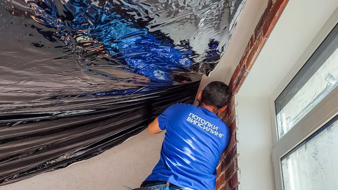 Монтаж потолка на кухне 14 м2, полотно VISP L9003 (3.50)