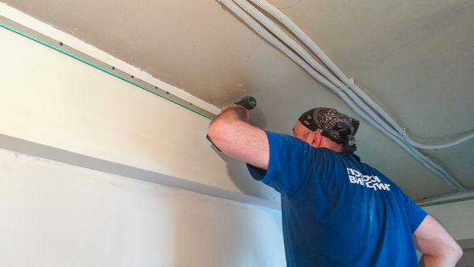 Монтаж потолка в коридоре 8 м2, полотно VISP M9001 (3.25)
