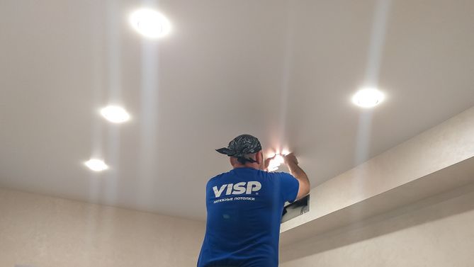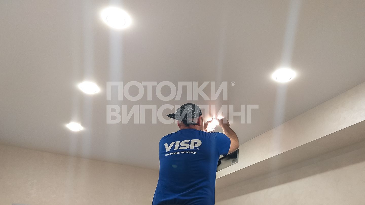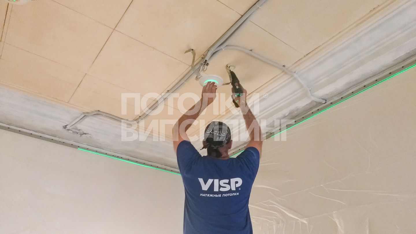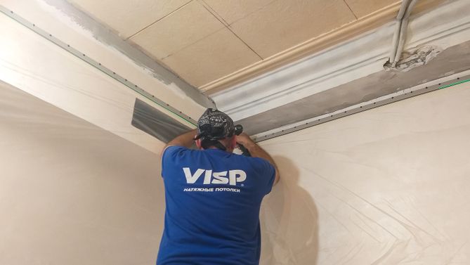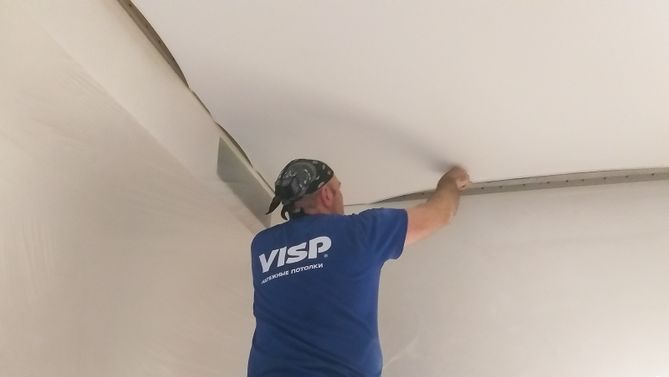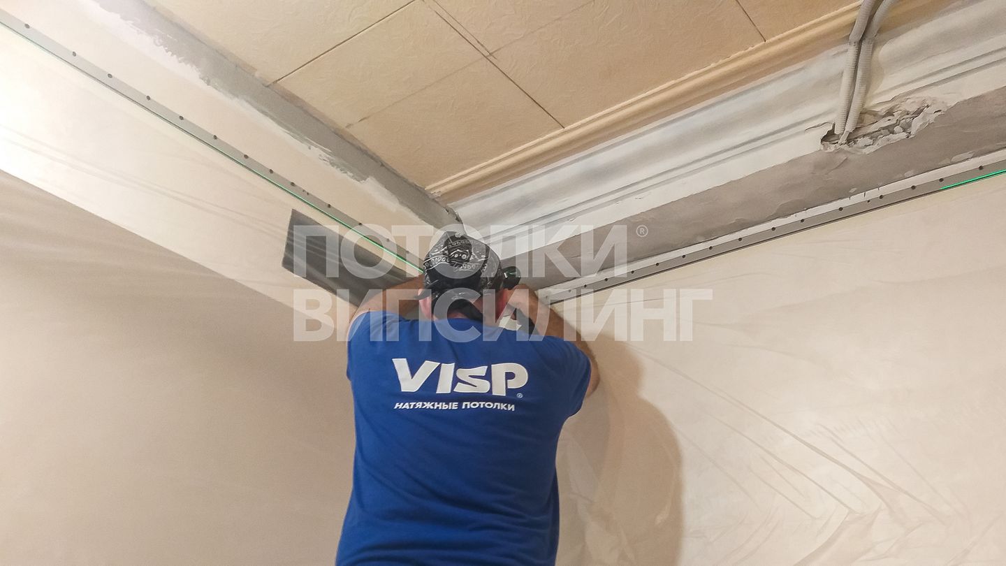 Монтаж потолка в спальне 9 м2, полотно VISP M9001 (2.60)