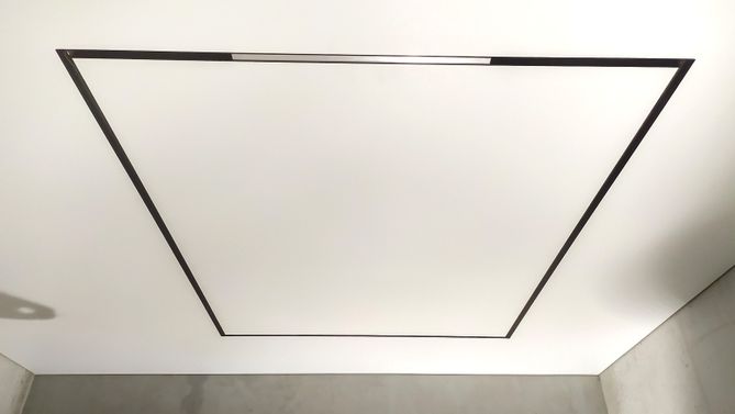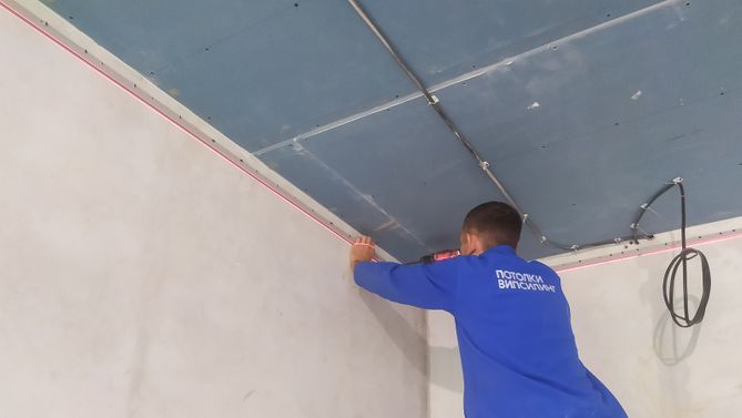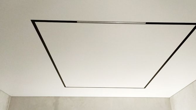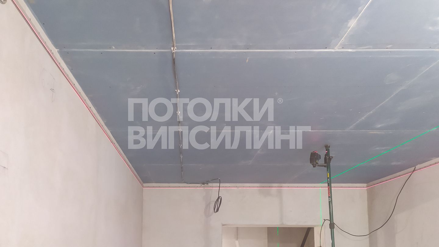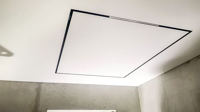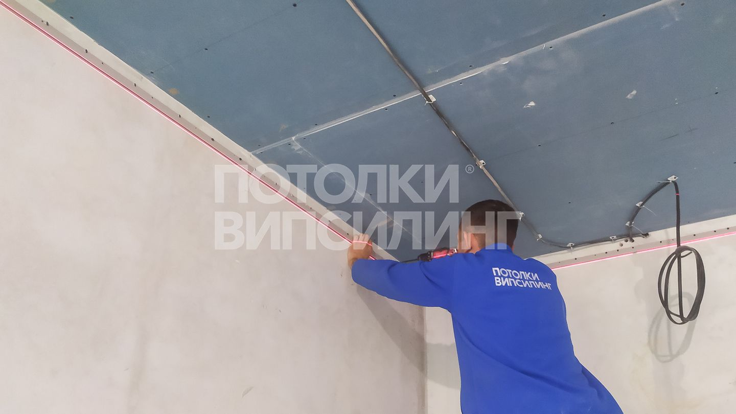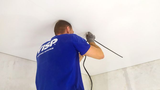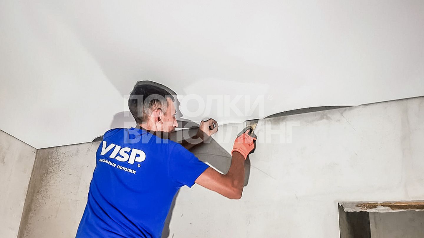 Монтаж потолка в гостиной 19 м2, полотно VISP M9001 (3.50)