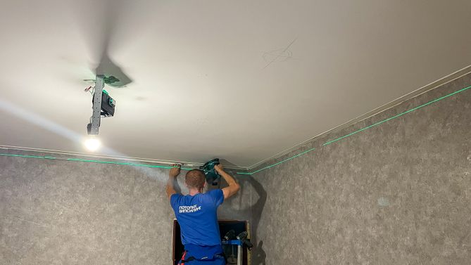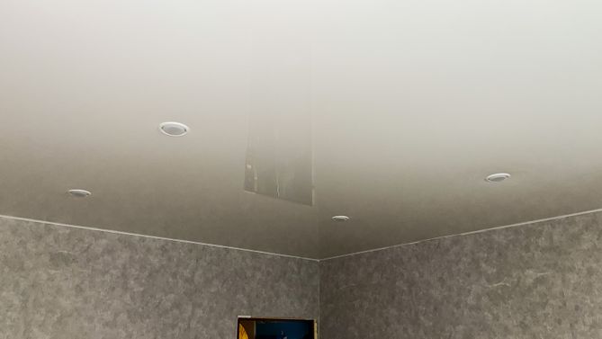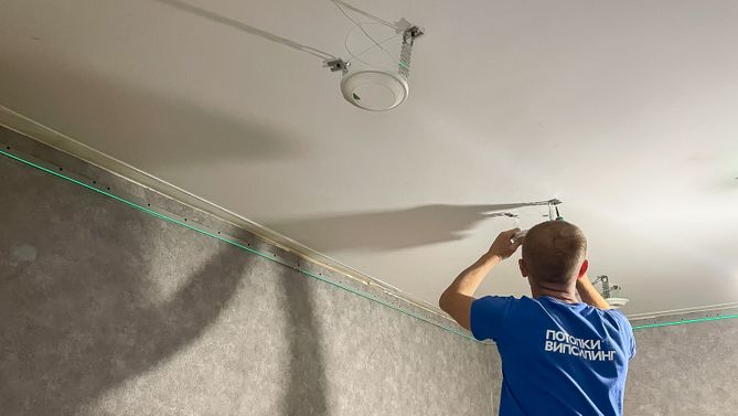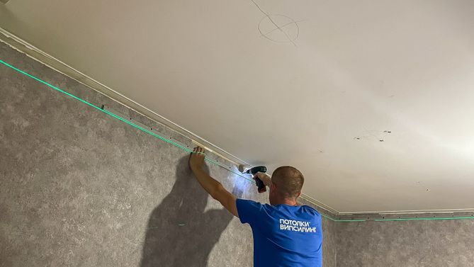 Монтаж потолка в гостиной 12 м2, полотно VISP L9001 (3.50)