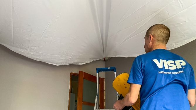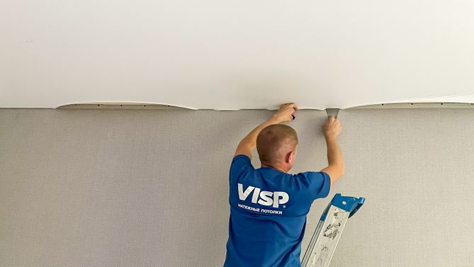 Монтаж потолка в спальне 10 м2, полотно VISP M9001 (2.60)