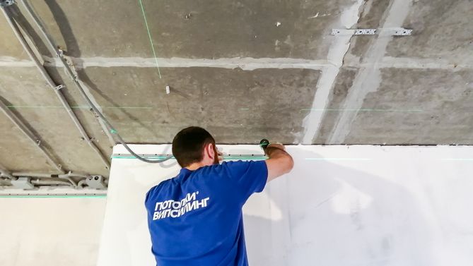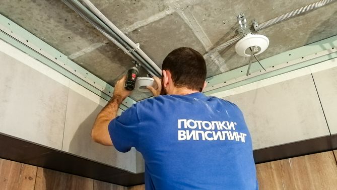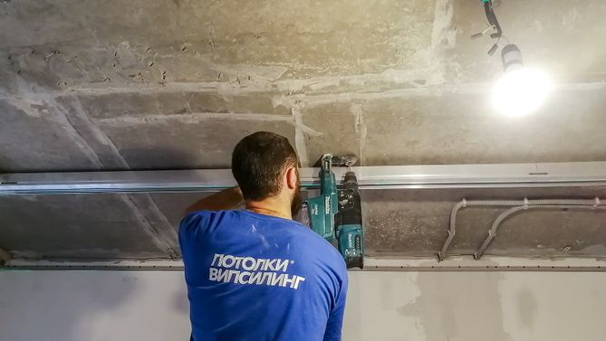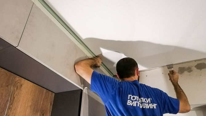 Монтаж потолка на кухне 23 м2, полотно VISP M9001 (4.90)