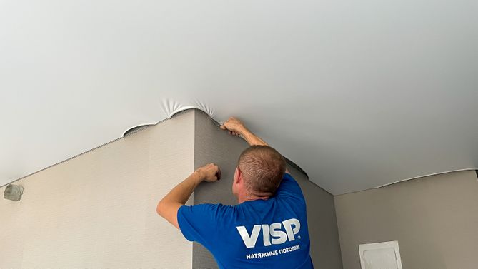 Монтаж потолка в квартире 21 м2, полотно VISP M9001 (4.90)