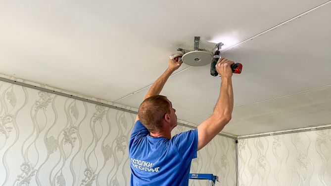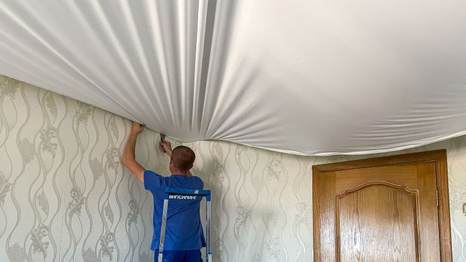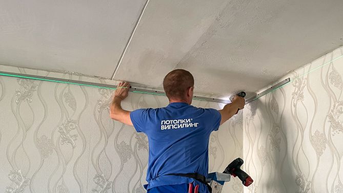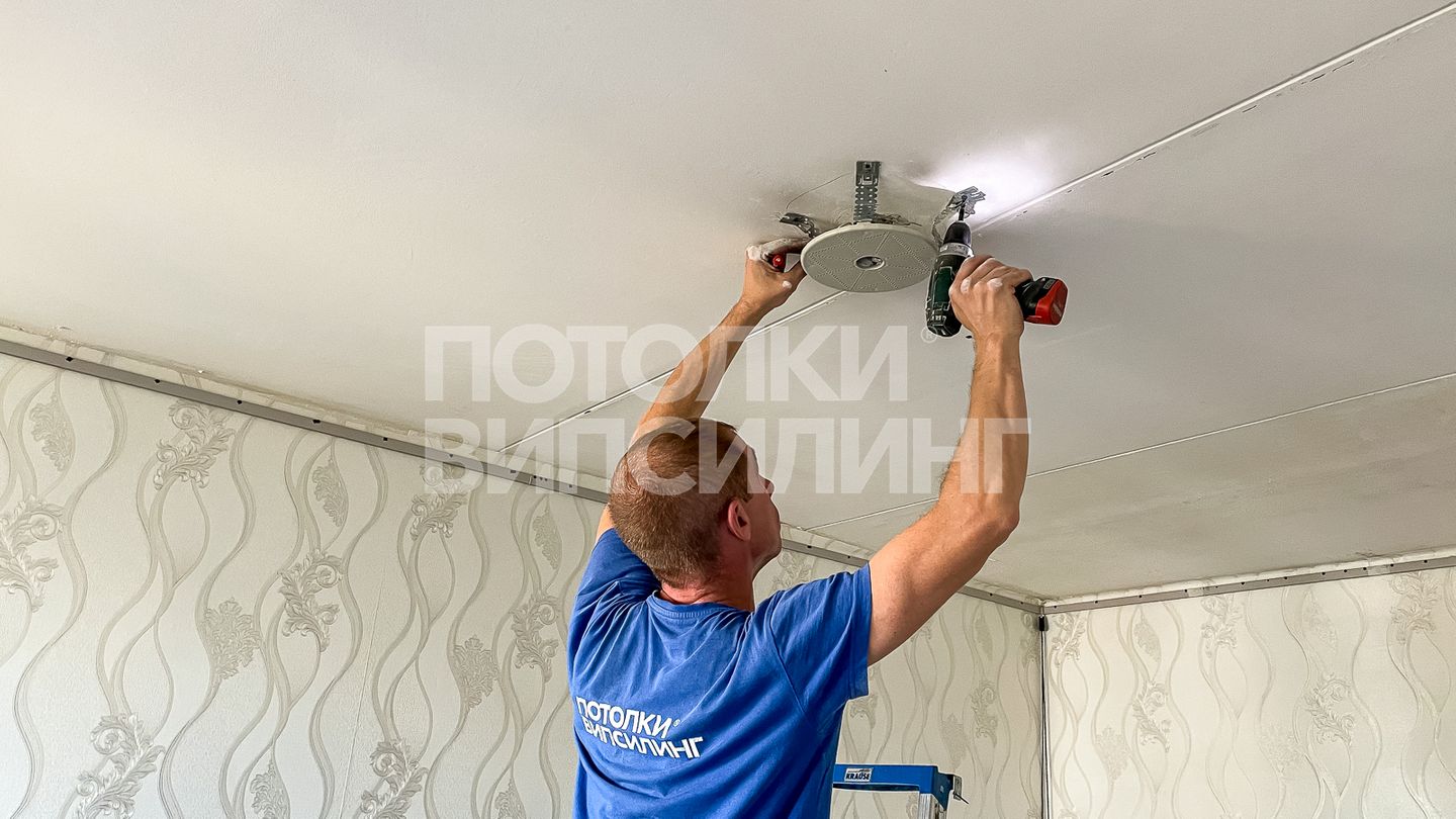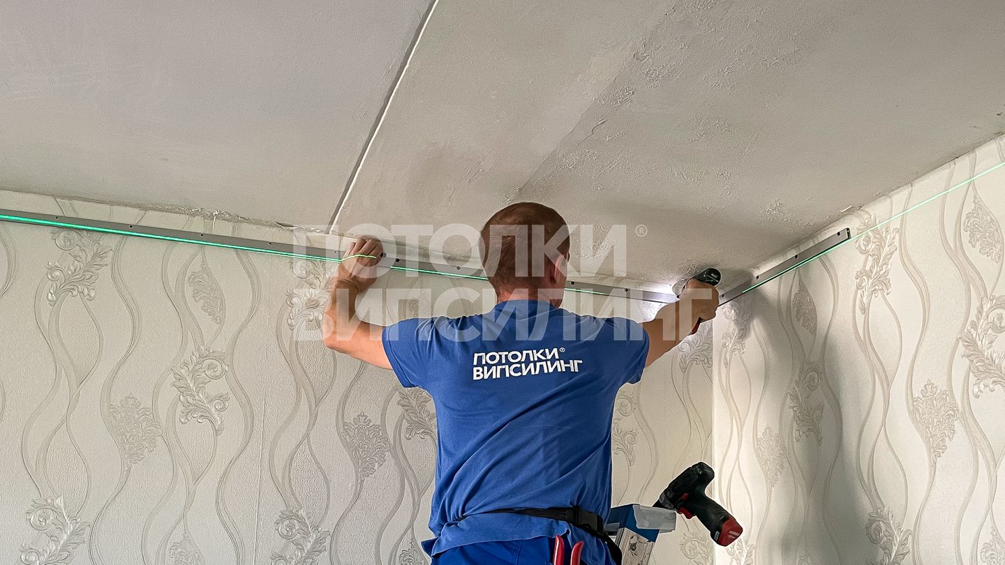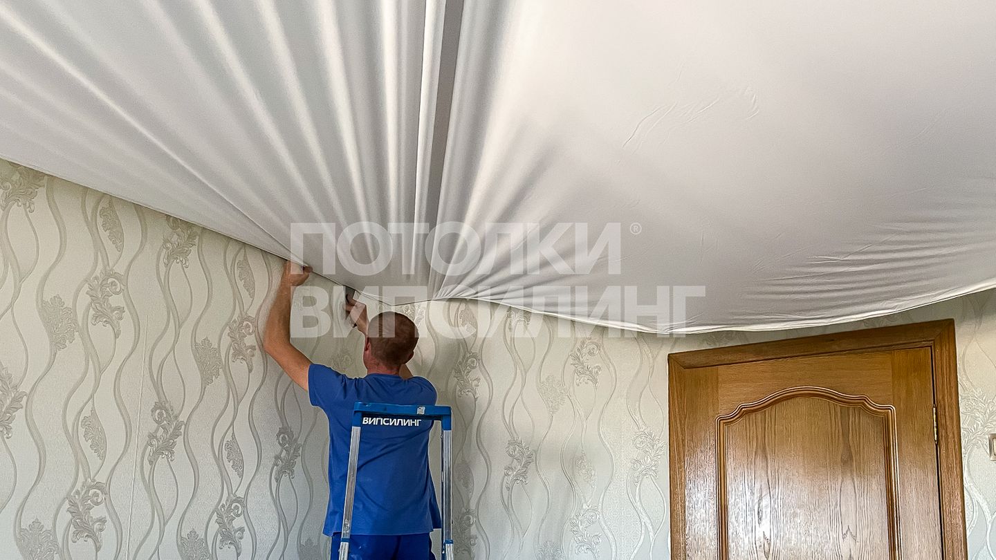 Монтаж потолка для зала 15 м2, полотно VISP M9001 (3.50)
