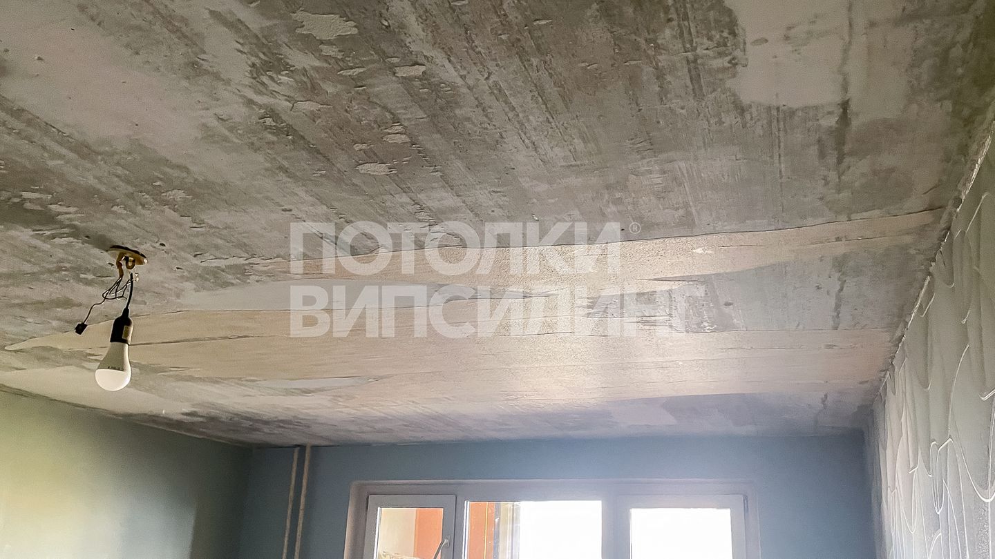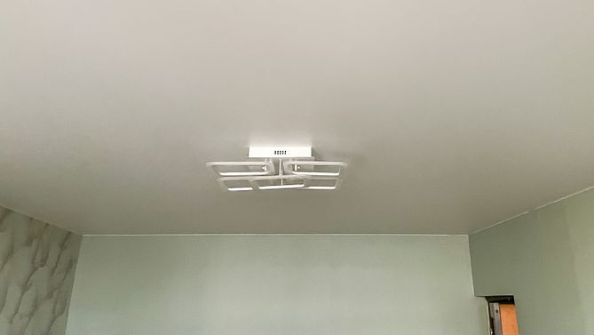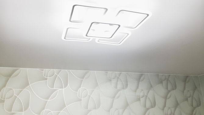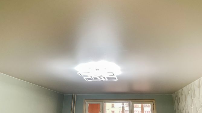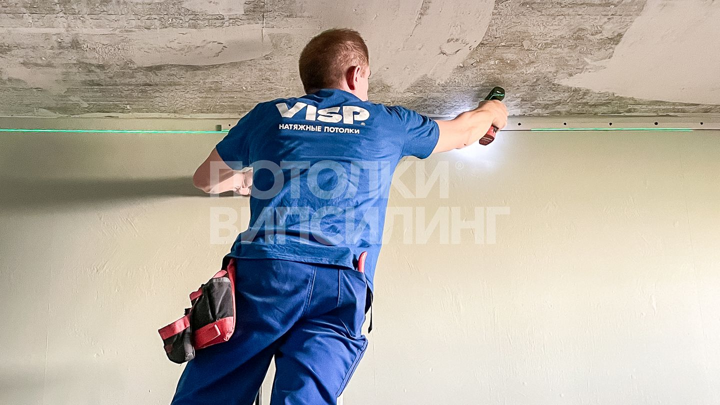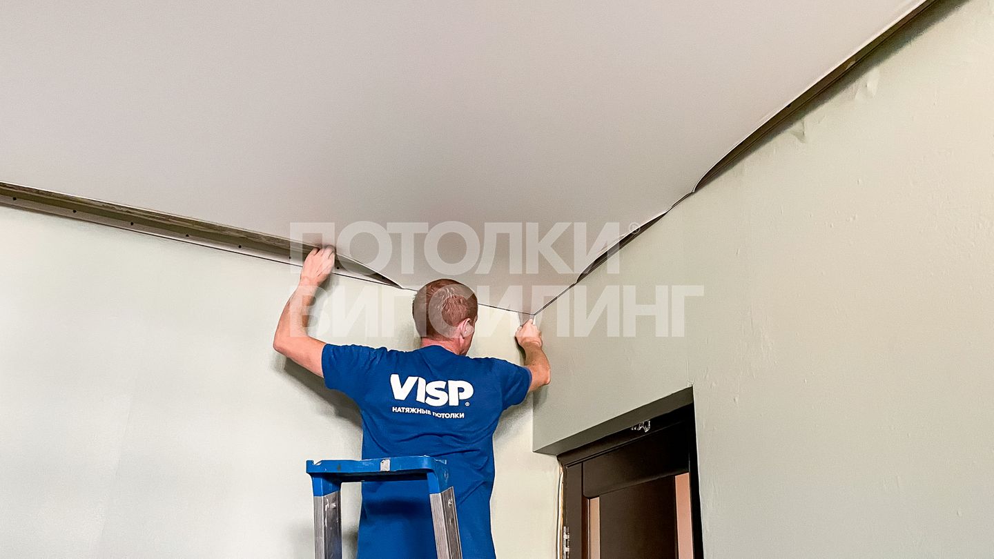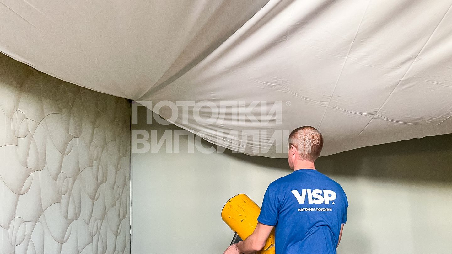 Монтаж потолка в гостиной 19 м2, полотно VISP M9001 (3.50)