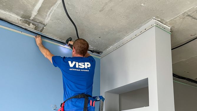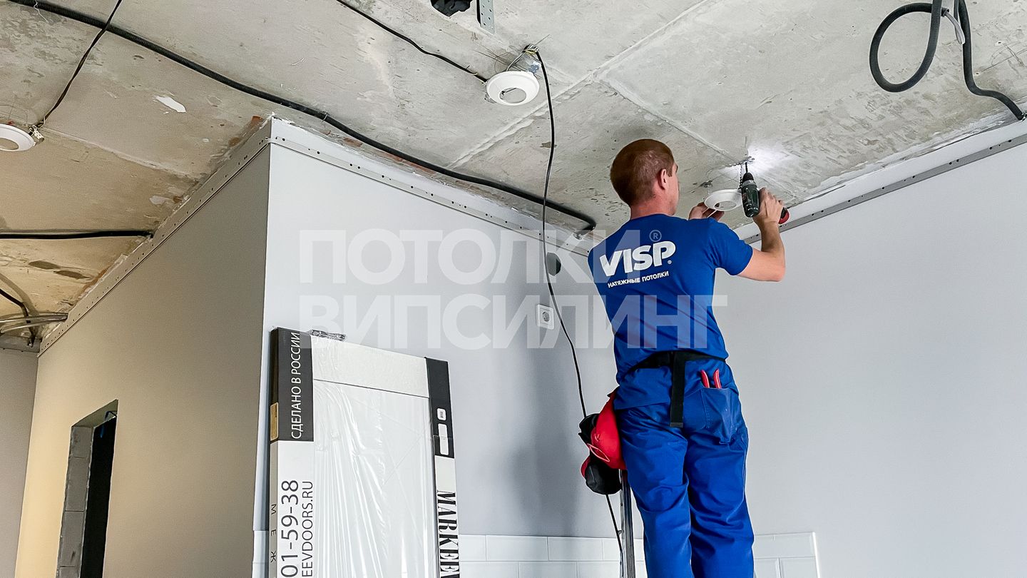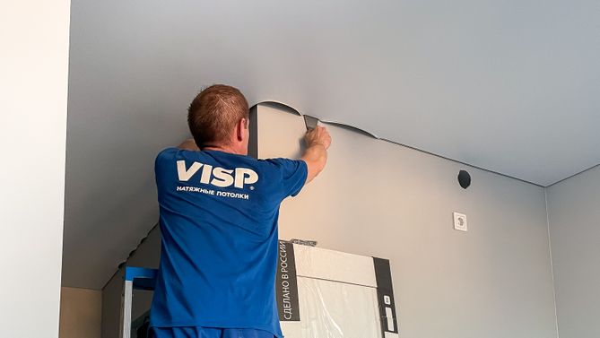 Монтаж потолка в квартире 19 м2, полотно VISP M9001 (3.80)