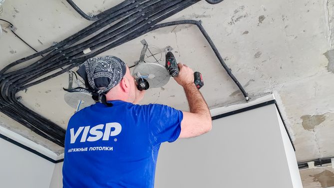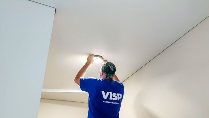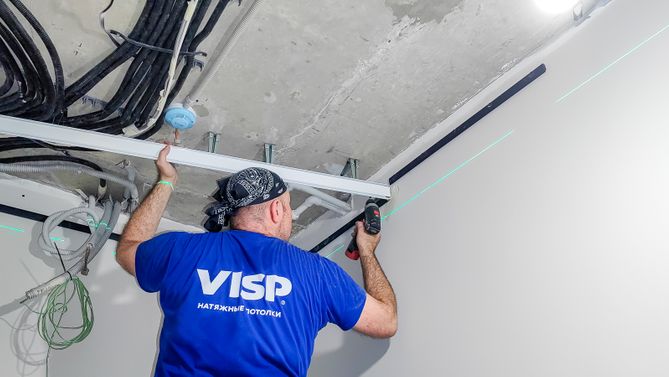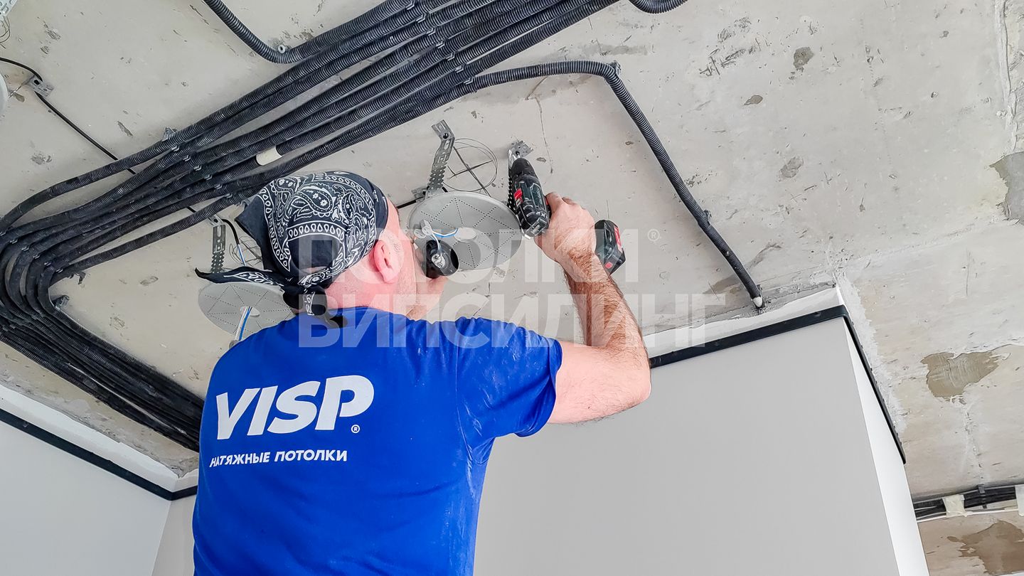 Монтаж потолка для зала 24 м2, полотно VISP M9001 (4.90)