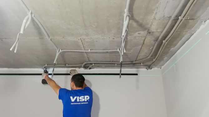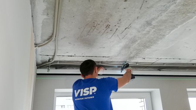 Монтаж потолка в квартире 38 м2, полотно VISP M9001 (5.45)