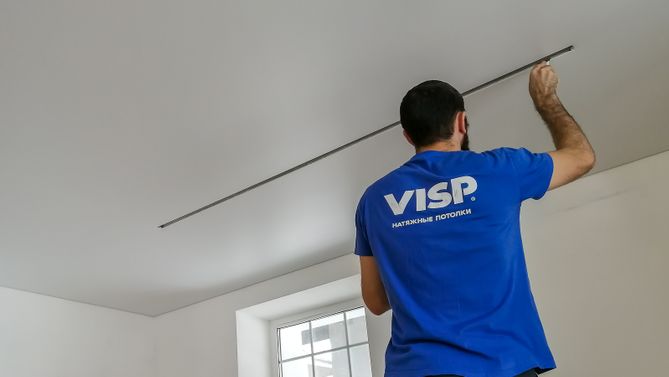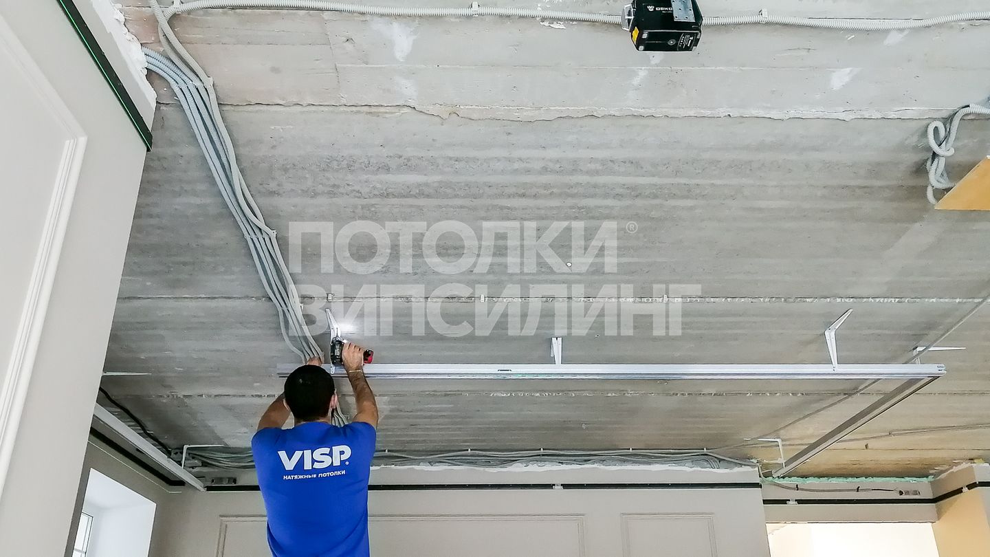 Монтаж потолка для зала 39 м2, полотно VISP S9020 (5.45)