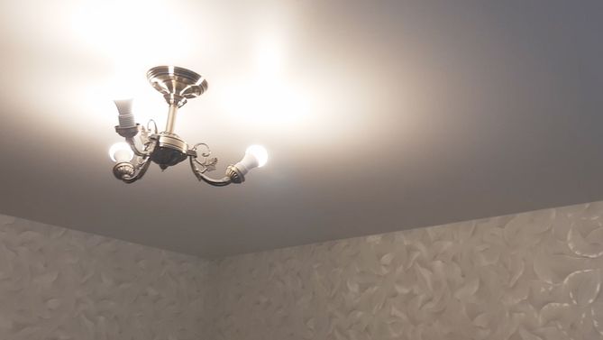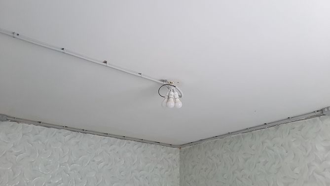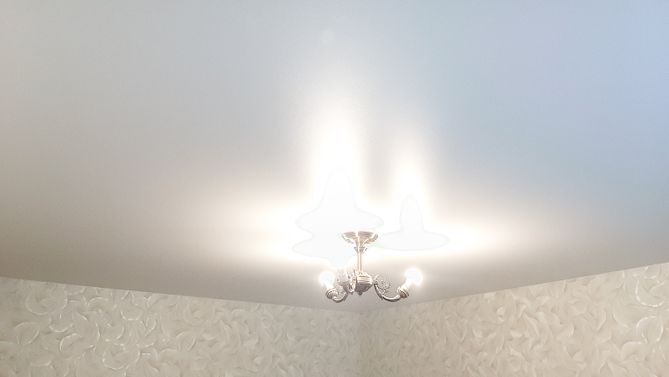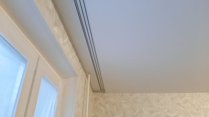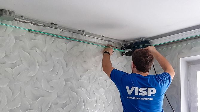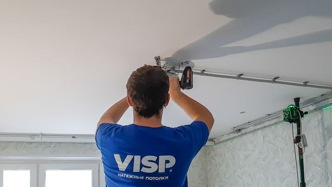 Монтаж потолка в гостиной 15 м2, полотно VISP M9001 (3.50)