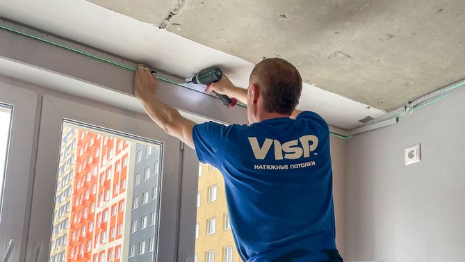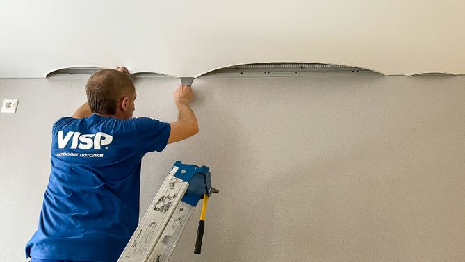 Монтаж потолка на кухне 20 м2, полотно VISP M9001 (3.25)