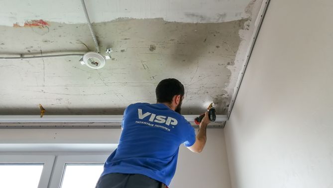Монтаж потолка в квартире 28 м2, полотно VISP M9001 (5.45)