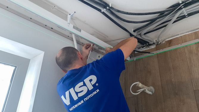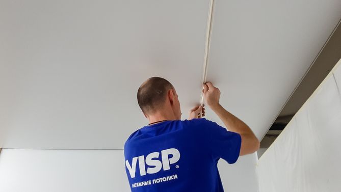 Монтаж потолка в спальне 14 м2, полотно VISP M9001 (4.00)