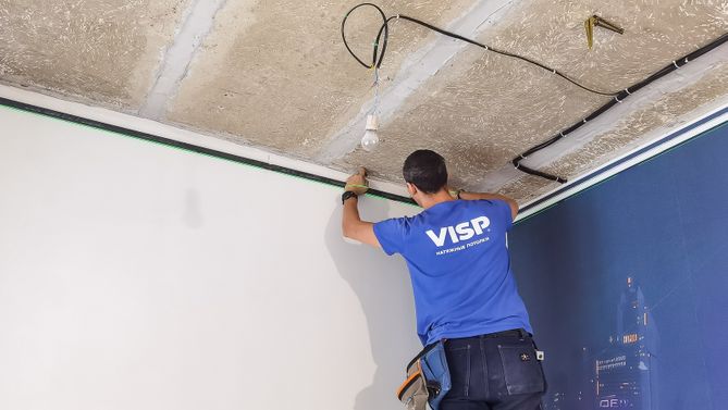 Монтаж потолка в детской 13 м2, полотно VISP M9001 (3.25)