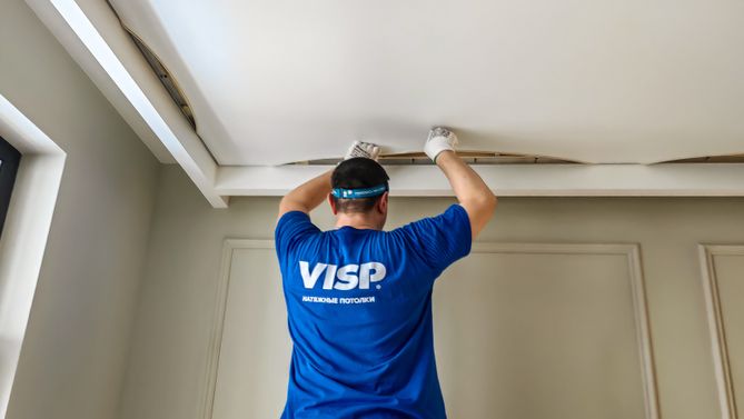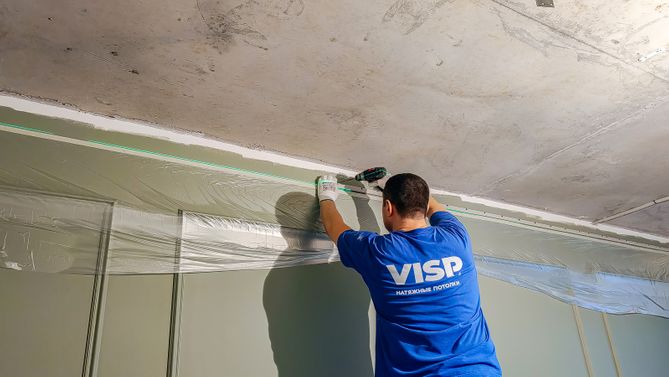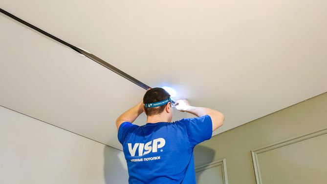 Монтаж потолка в спальне 16 м2, полотно VISP S9020 (3.25)
