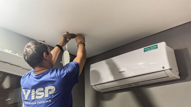 Монтаж потолка в спальне 10 м2, полотно VISP S9020 (3.50)