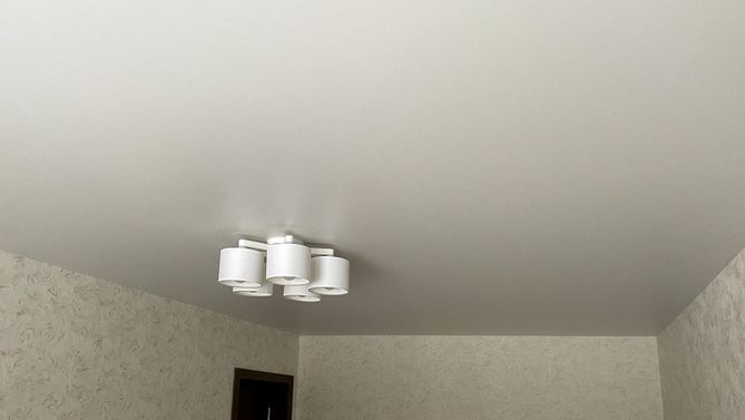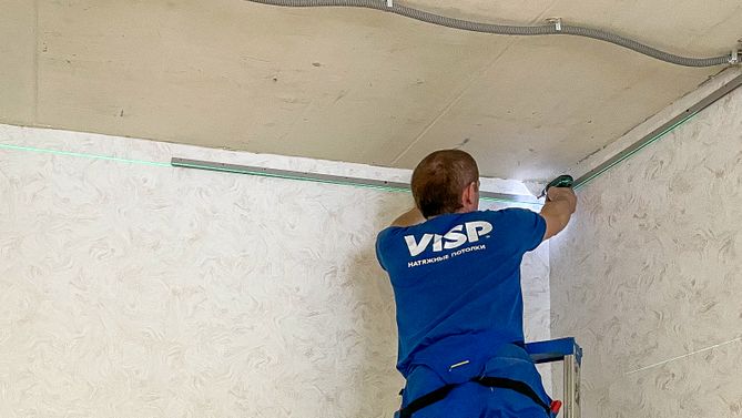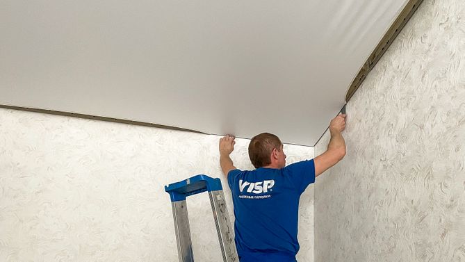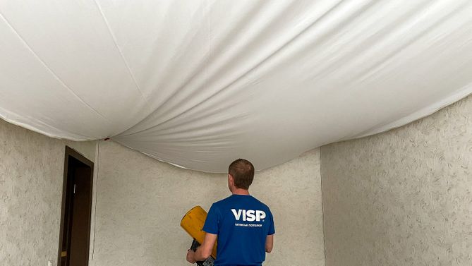 Монтаж потолка в гостиной 17 м2, полотно VISP M9001 (2.15)