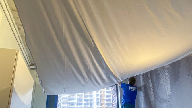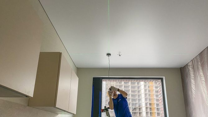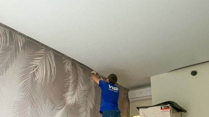 Монтаж потолка на кухне 15 м2, полотно VISP M9001 (3.25)