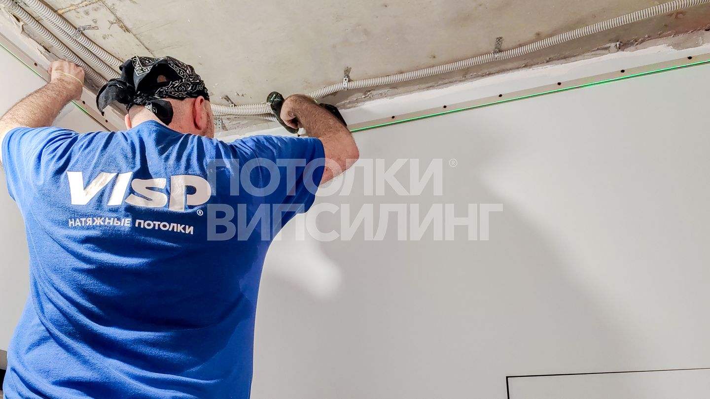 Монтаж потолка в квартире 20 м2, полотно VISP M9001 (4.90)
