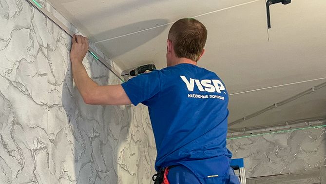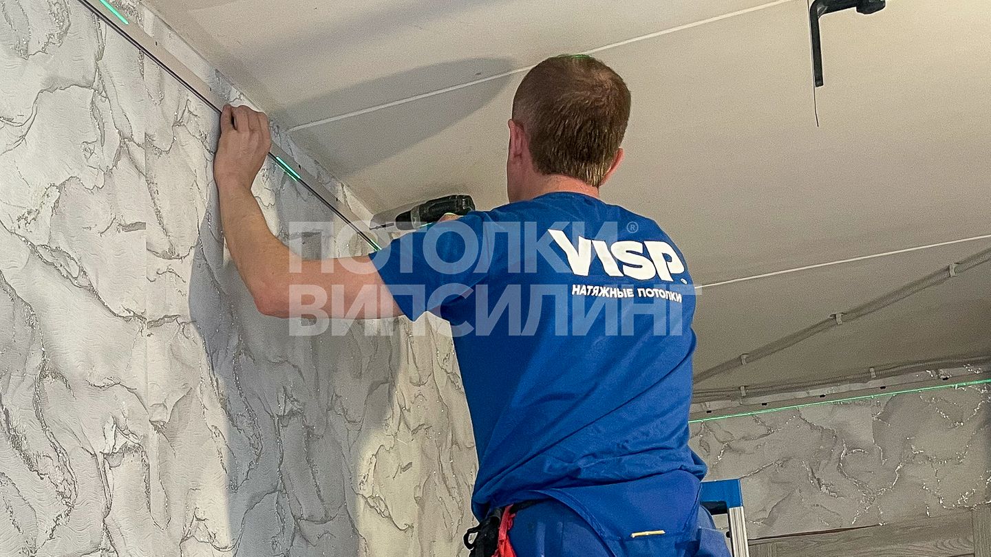 Монтаж потолка в спальне 11 м2, полотно VISP M9001 (3.25)