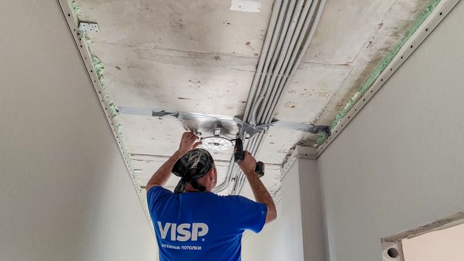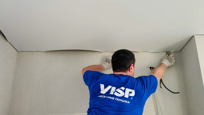 Монтаж потолка в квартире 32 м2, полотно VISP M9001 (4.90)