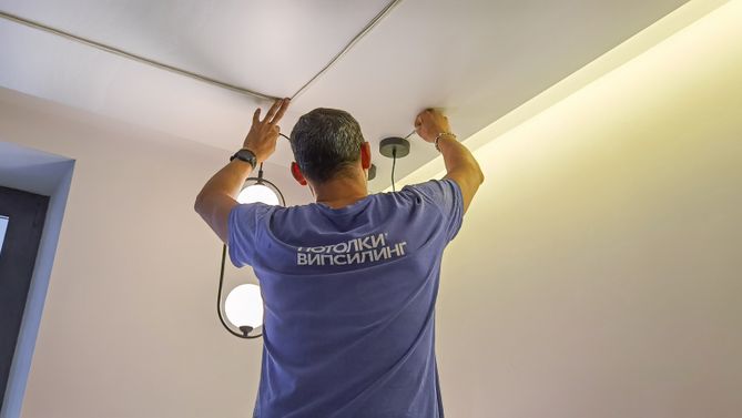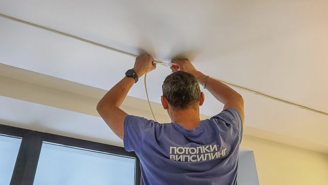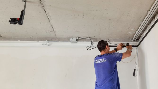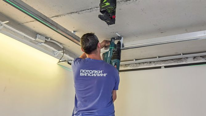 Монтаж потолка в спальне 16 м2, полотно VISP S9020 (3.80)