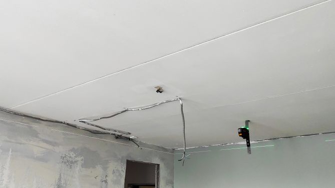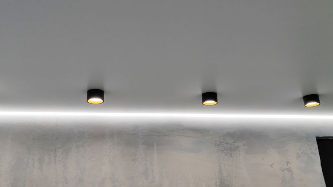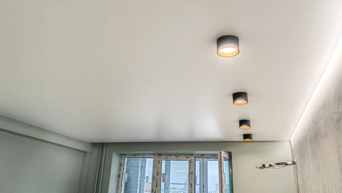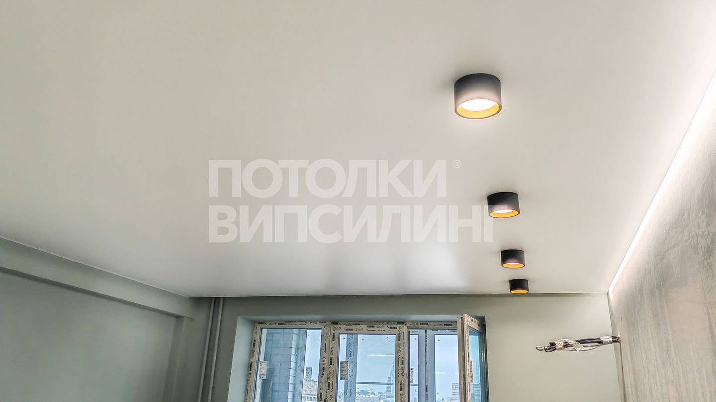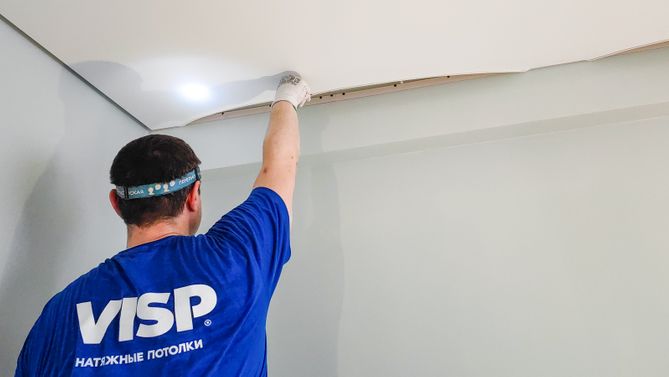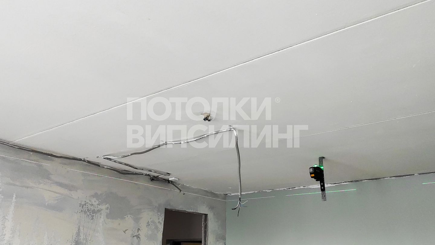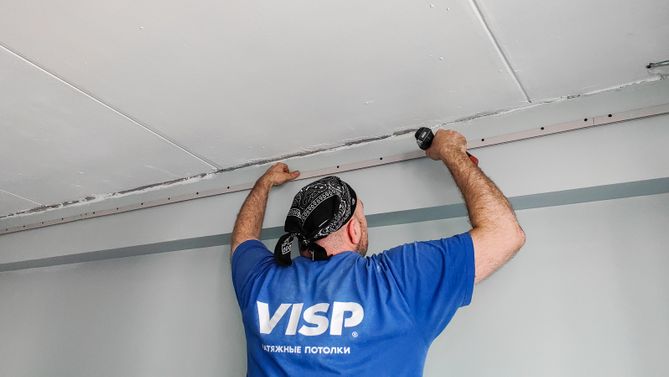 Монтаж потолка в гостиной 16 м2, полотно VISP M9001 (3.50)