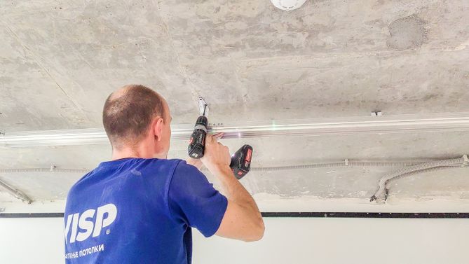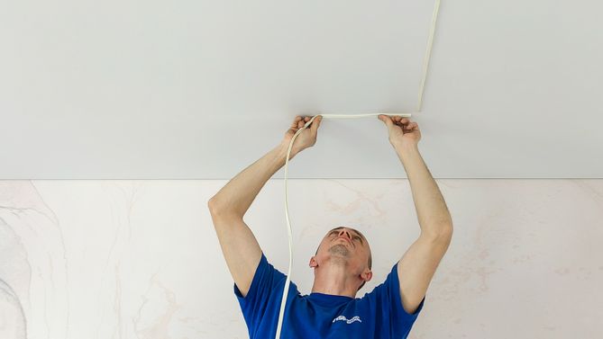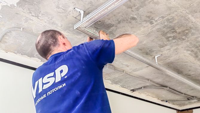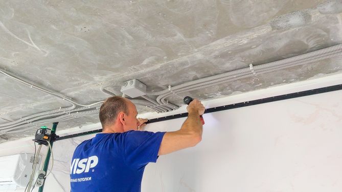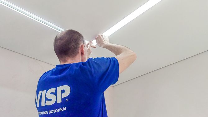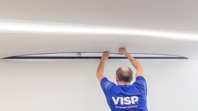 Монтаж потолка в гостиной 24 м2, полотно VISP S9020 (4.00)